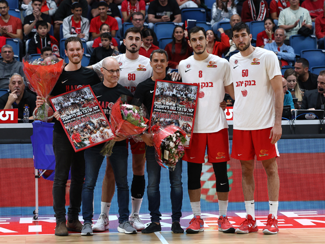 לפני המשחק נפרדו הירושלמים מפיזיותרפיסטים שליוו אותם 14 שנה (צילום: דני מרון)