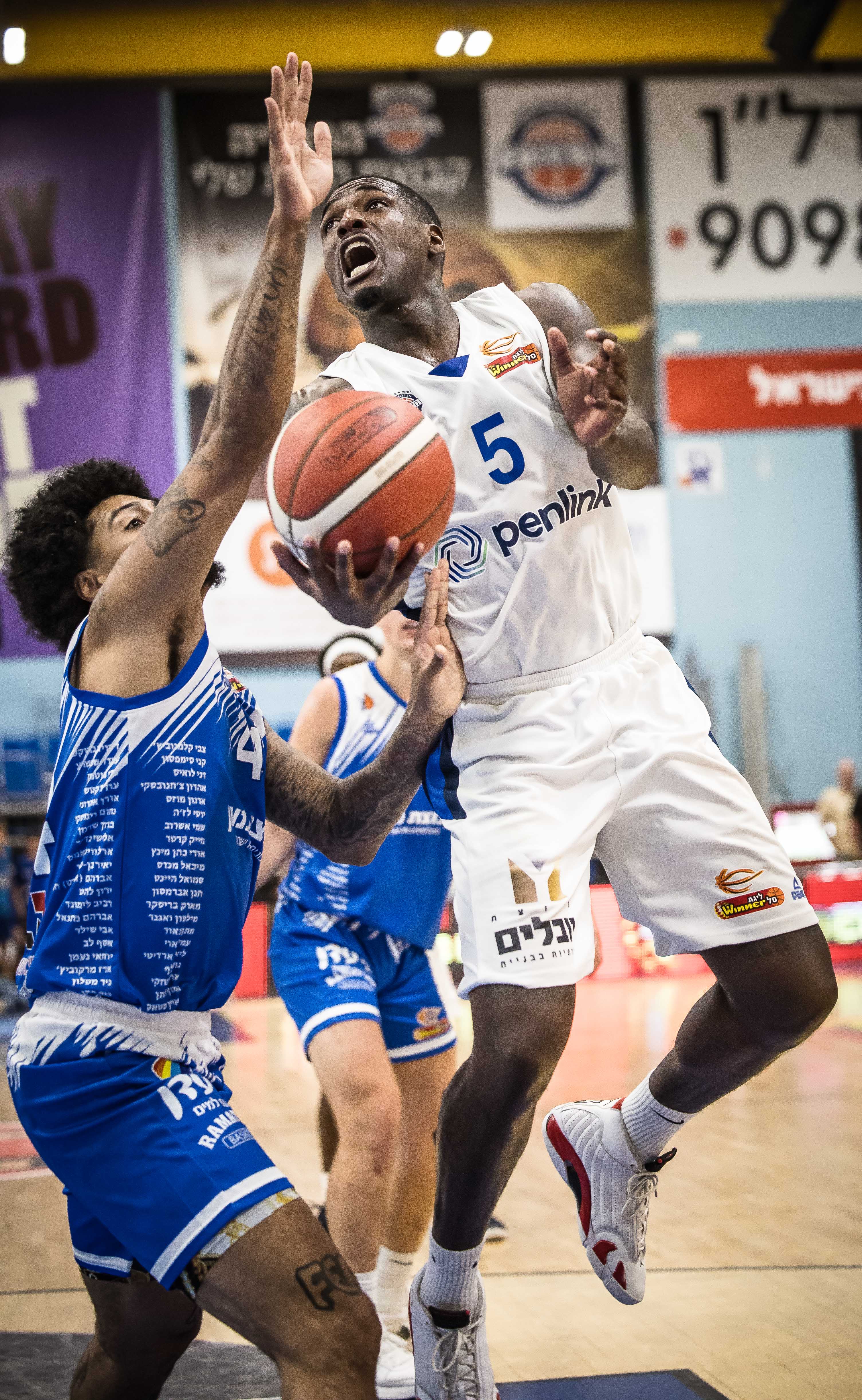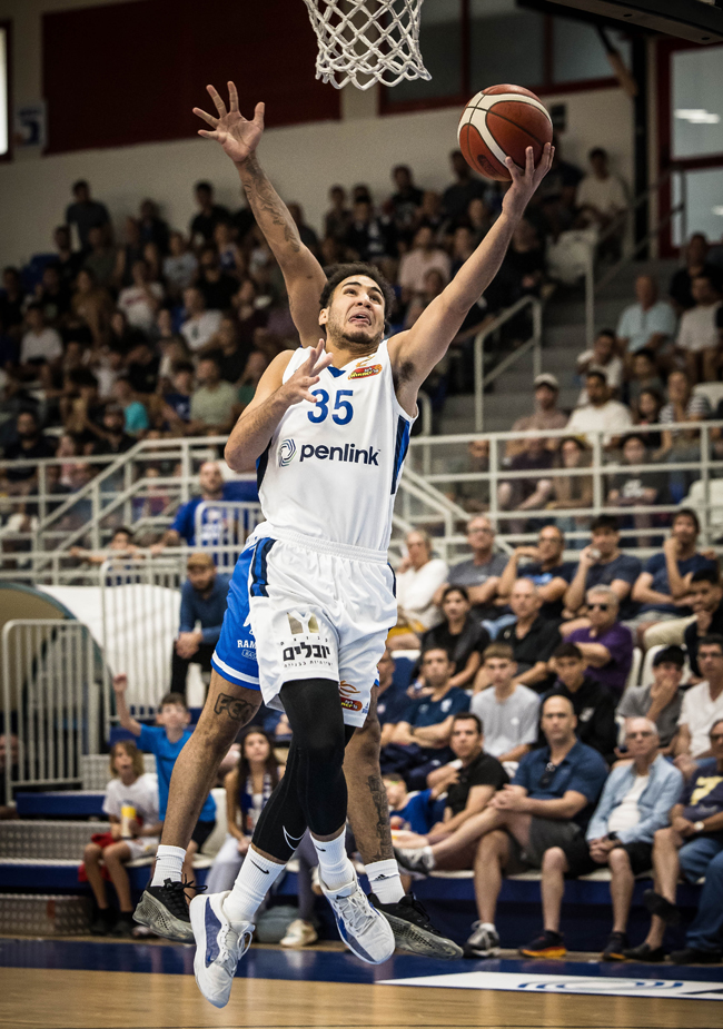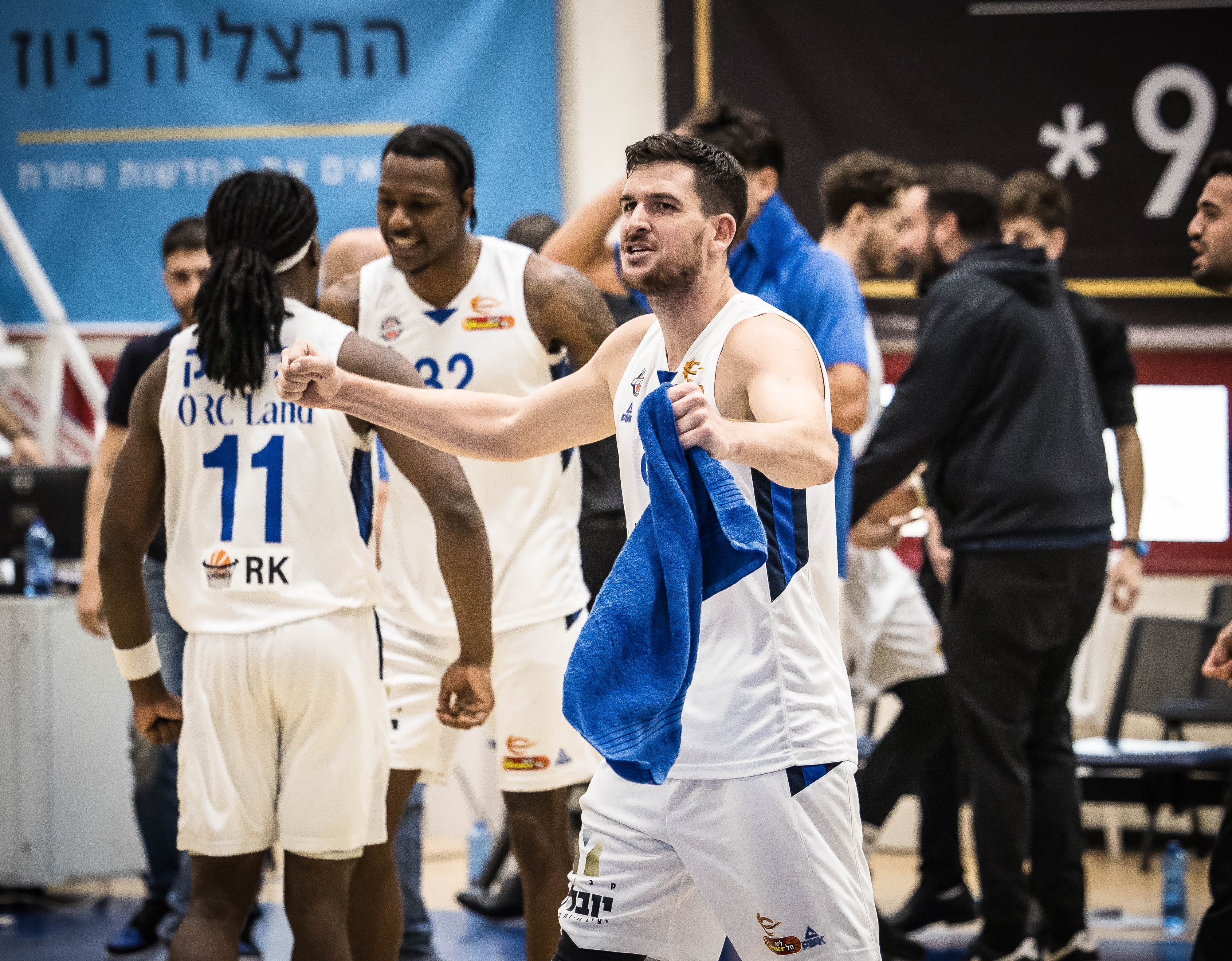 בני "Penlink" הרצליה כבר פיגרה ב-21 הפרש מול מכבי "קבוצת כנען" ר"ג, אך הפכה את התוצאה עם ריצת 4:27 מטורפת ברבע האחרון בדרך ל־86:88 (צילום: עודד קרני)