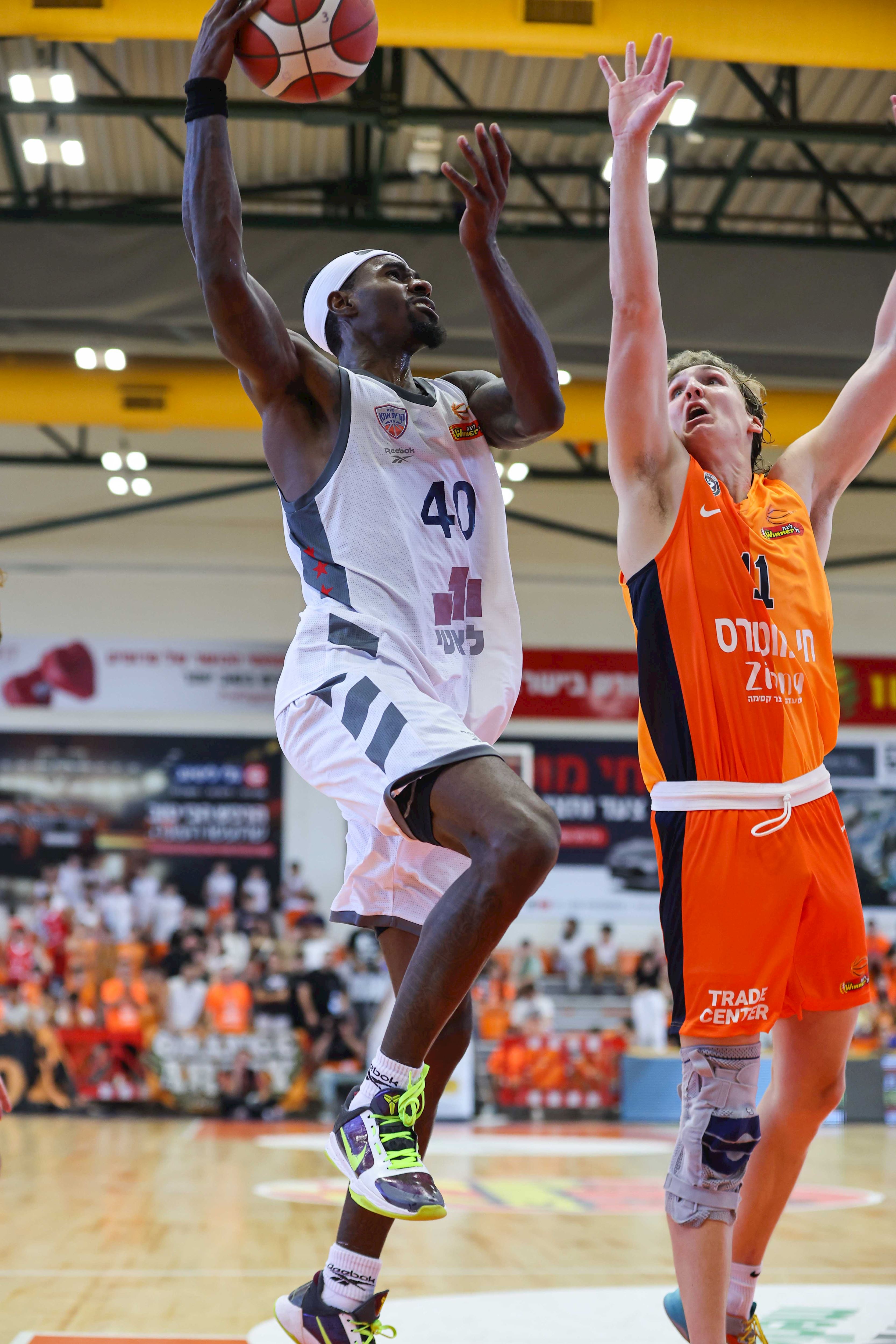 סמית' חודר על שגב. רבע שלישי לא טוב של קריית אתא (צילום: לירון מולדובן)