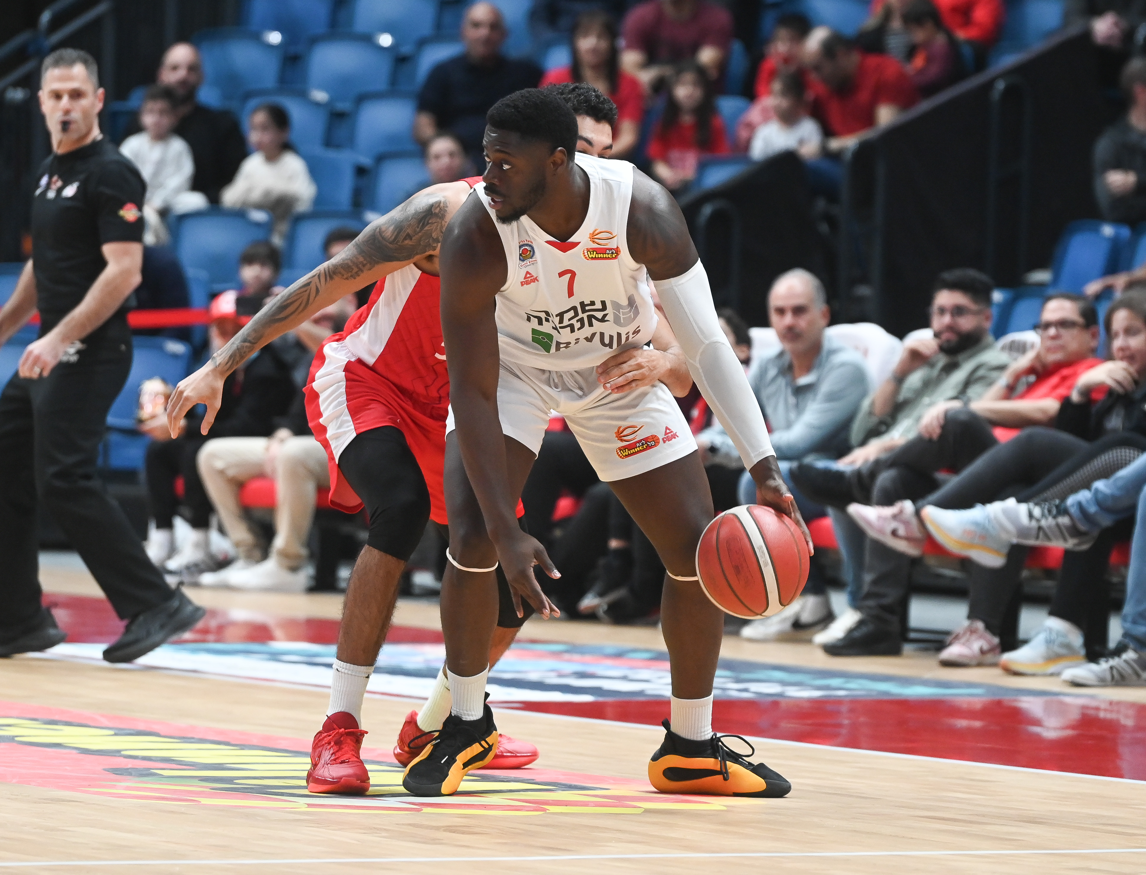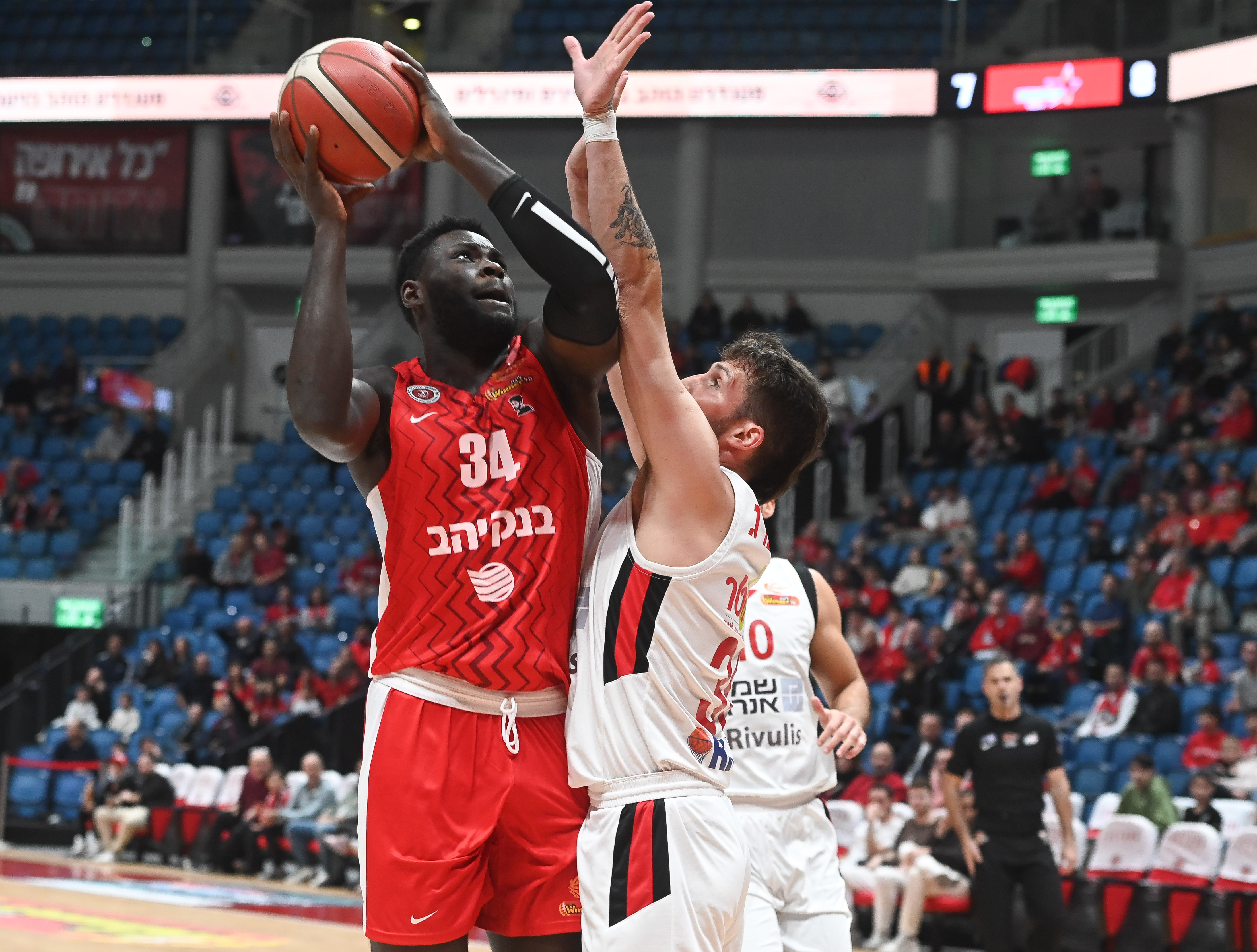 הפועל "בנק יהב" י־ם נתקלה ביריבה עיקשת בדמות הפועל "Rivulis" גליל עליון, אך התעלות נוספת של הארפר העניקה לה ניצחון 80:84 בפיס ארנה (צילום: ברני ארדוב)
