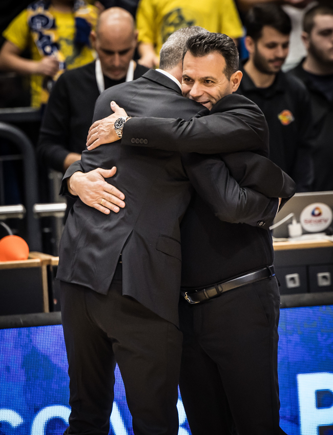 איטודיס וקטש מתחבקים בפתיחה. מכירים עוד מימיהם המשותפים בפנאתינייקוס (צילום: עודד קרני)