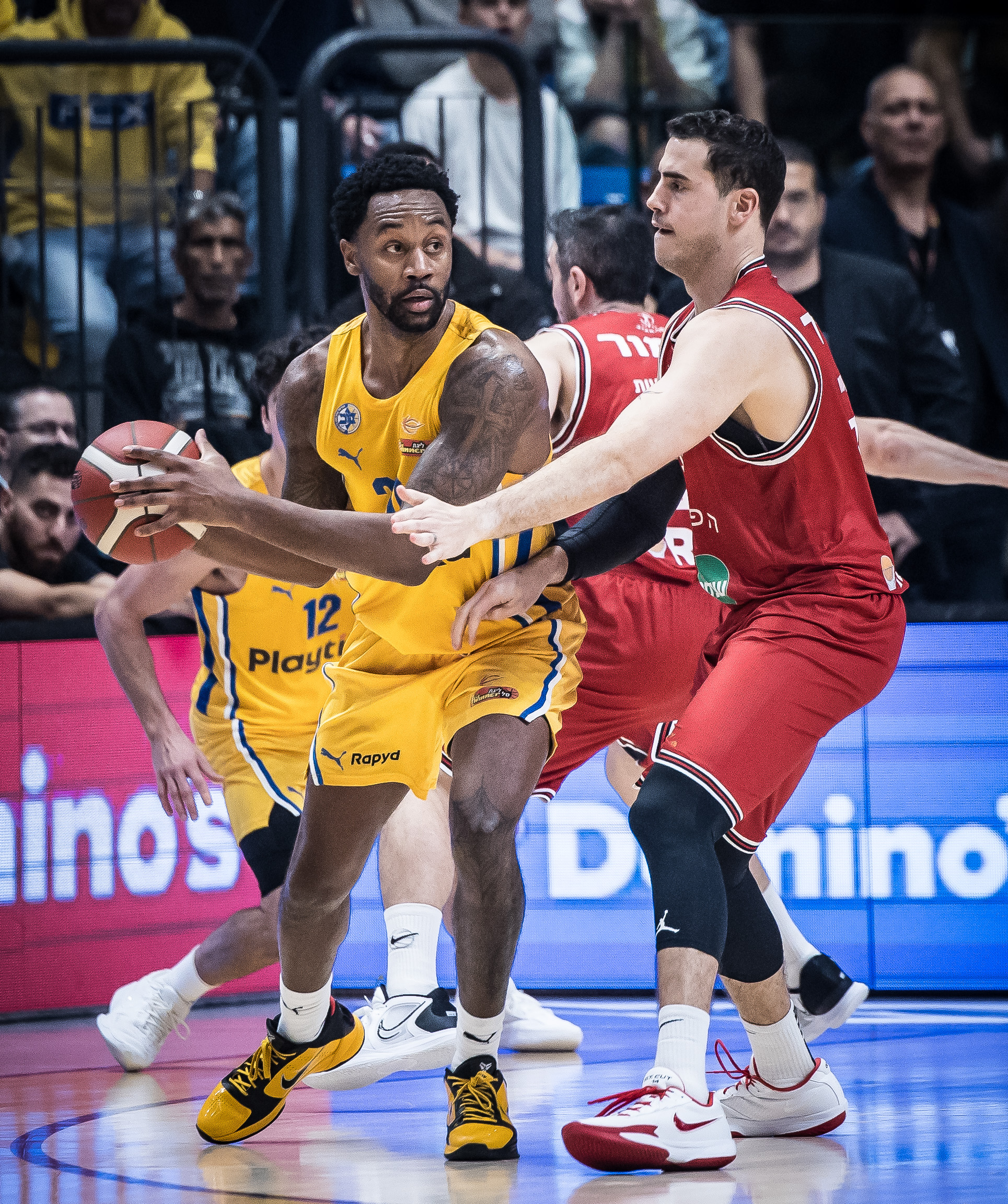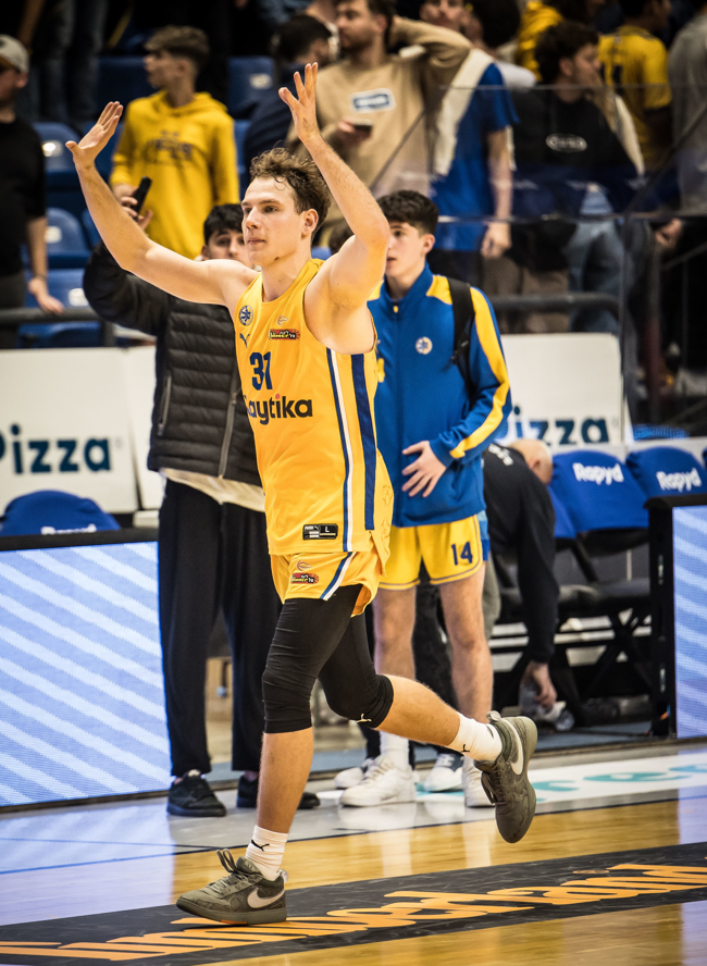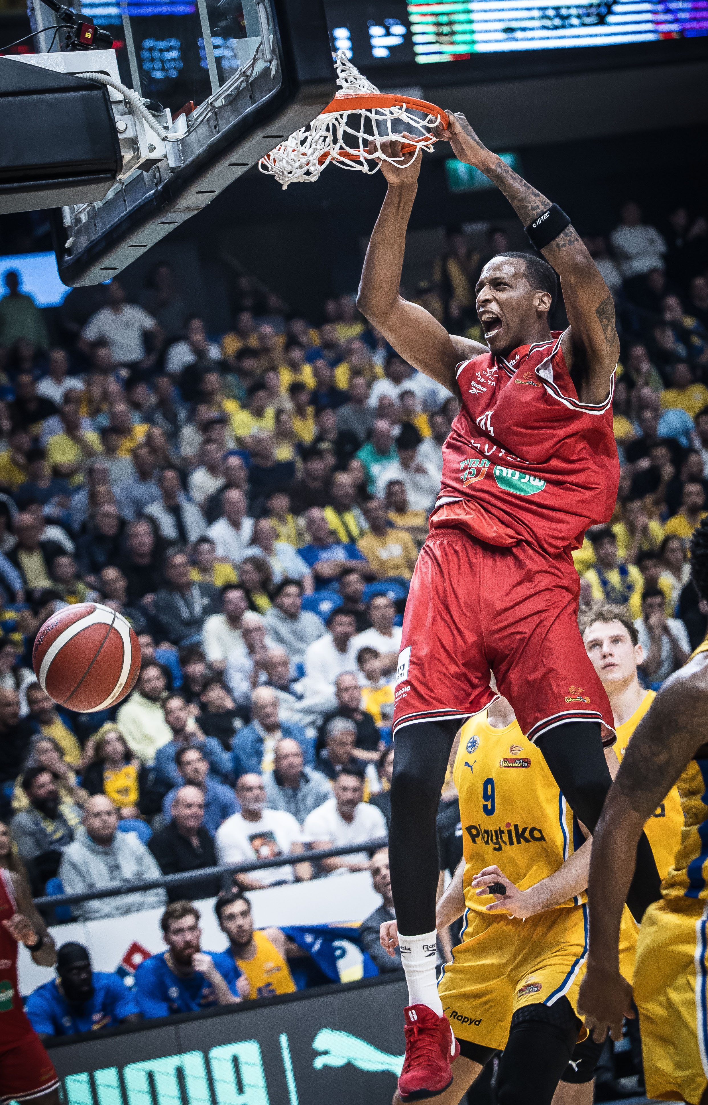 ג'יילן הורד, אקס האדומים מהשנתיים האחרונות והשחקן הכי יציב של הצהובים מפתיחת העונה, סיים ערב מפלצתי של 26 נקודות – 12 מהן בארבע דקות בלבד ברבע השני – כשהוא מטריף את יושבי ההיכל וגם את עצמו, קולע שלוש מארבע זריקותיו לשלוש וקוטף גם שישה ריבאונדים. רוקאס יוקובאיטיס קלע 11 נקודות כבר ברבע הראשון בדרך ל־18 במשחק כולו, כשהוא רחוק ארבעה ריבאונדים ואסיסט אחד מטריפל־דאבל ומאבד רק כדור בודד. רומן סורקין וליוואי רנדולף התעוררו שניהם במחצית השנייה וסיימו עם 11 נקודות כל אחד, כשאקס הפועל ירושלים משיג את מדד הפלוס־מינוס הגבוה ביותר על הפרקט (20+). תמיר בלאט סגר רשימה של חמישה קלעים בספרות כפולות, כשהוא מחלק גם חמישה אסיסטים. האלופה, שאחת מנקודות החוזק שלה העונה היא הנוכחות בריבאונד, ניצחה 28:38 במאבק מתחת לסלים – כשהיא מגבילה את יריבתה ל־19 כדורים חוזרים בלבד בהגנה, ומורידה בעצמה 13 כאלה בהתקפה – ובניגוד לחוסר היציבות שהראתה עד כה מחוץ לקשת, נהנתה הפעם מערב נהדר מהטווח עם 11 שלשות מ־23 ניסיונות (48%).