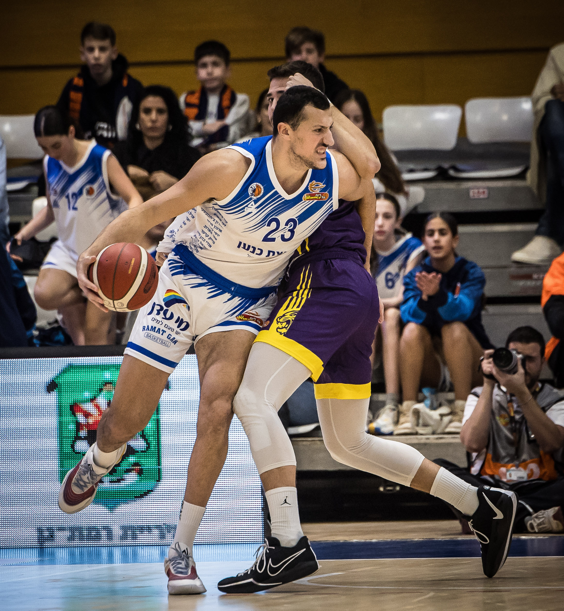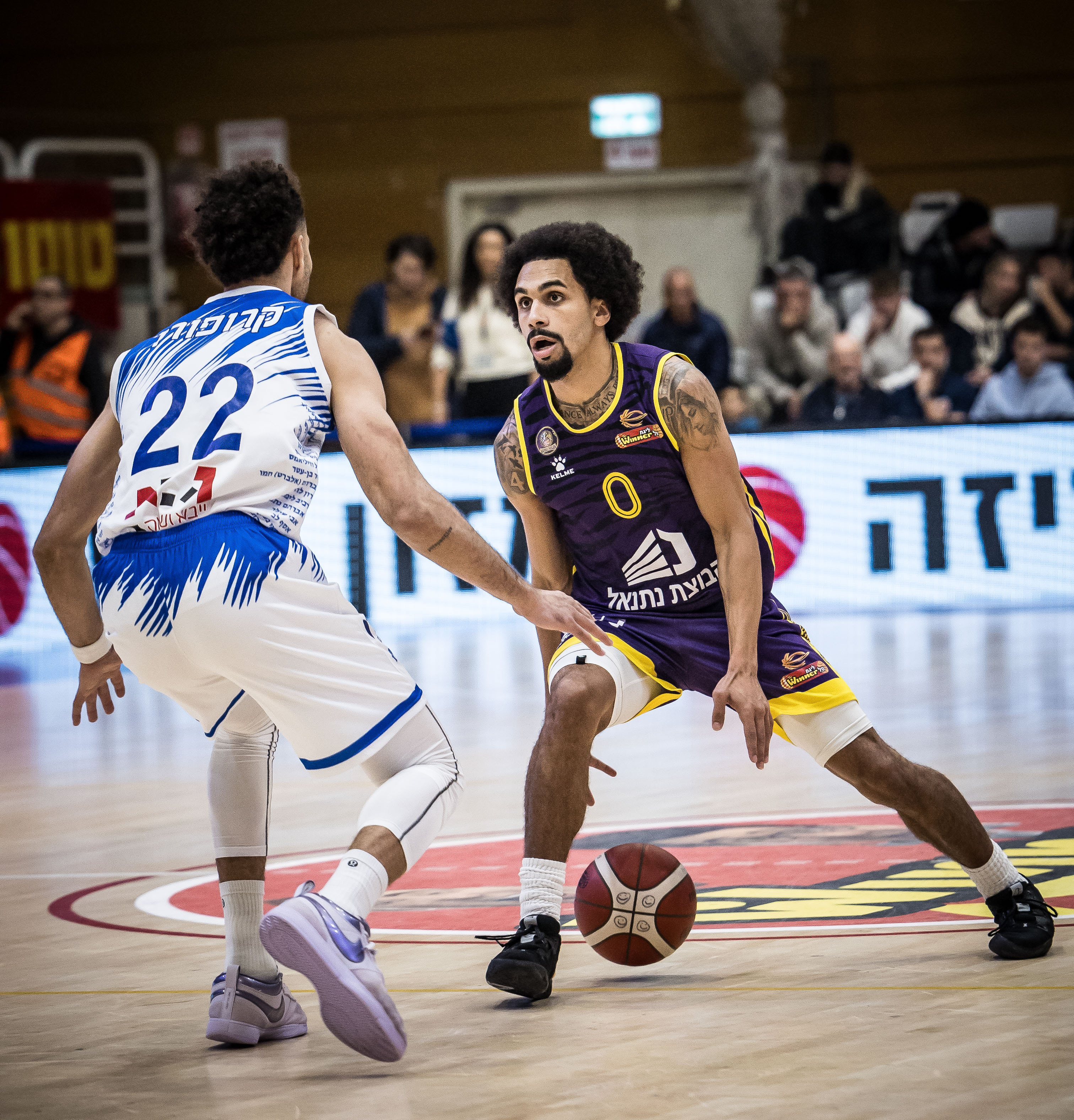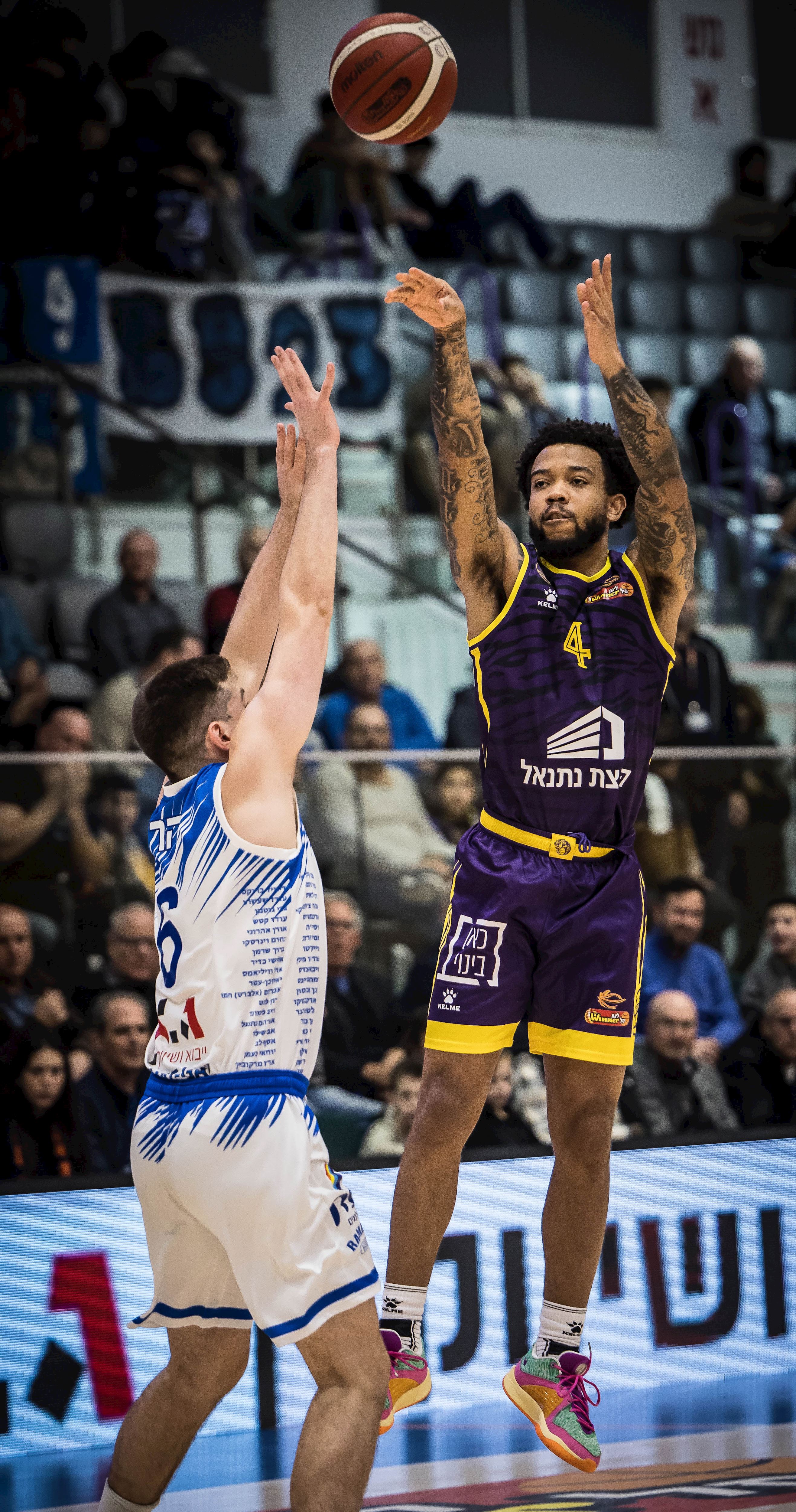 מכבי "קבוצת כנען" ר"ג שמטה יתרון דו־ספרתי מוקדם מול הפועל "קבוצת נתנאל" חולון, אבל התעלתה בסיום בדרך ל־88:90 דרמטי. 27 לסטיבנס (צילום: עודד קרני)