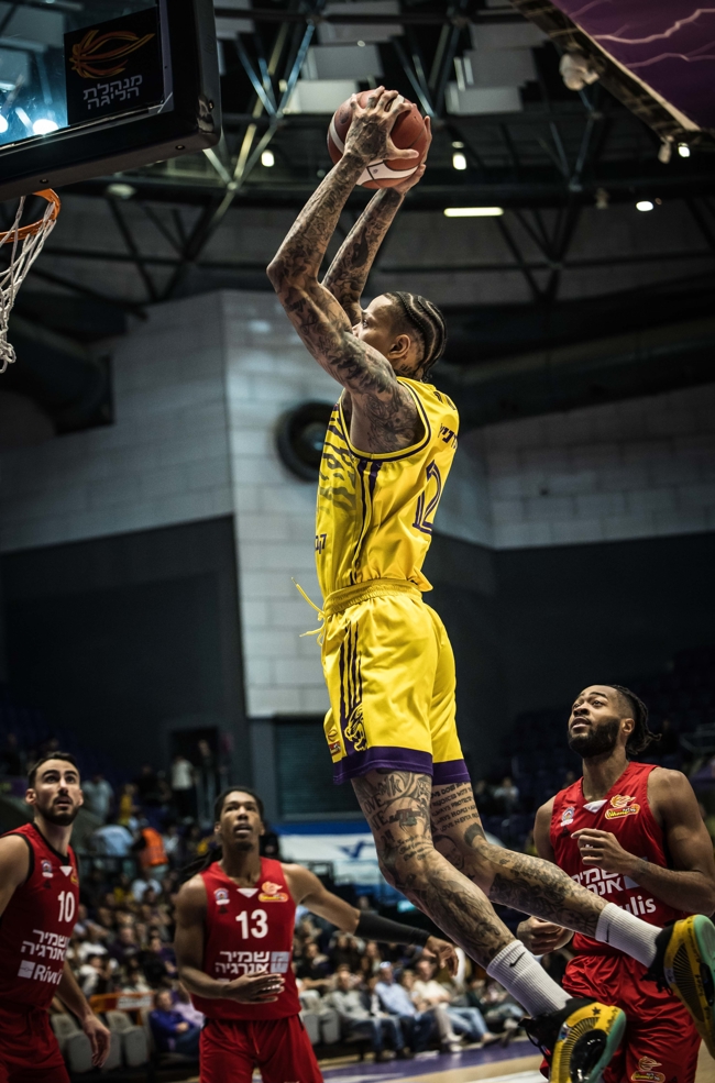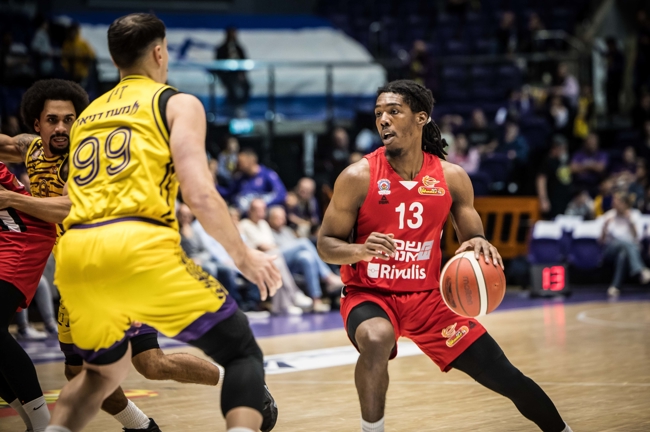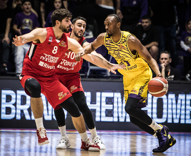 הפועל "קבוצת נתנאל" חולון כמעט איבדה יתרון עשרים מול הפועל "Rivulis" גליל עליון, אך ניצחה 77:80 אחרי דרמה בהיכל טוטו. ג'יילן וברנדן אדאמס בלטו (צילום: עודד קרני)