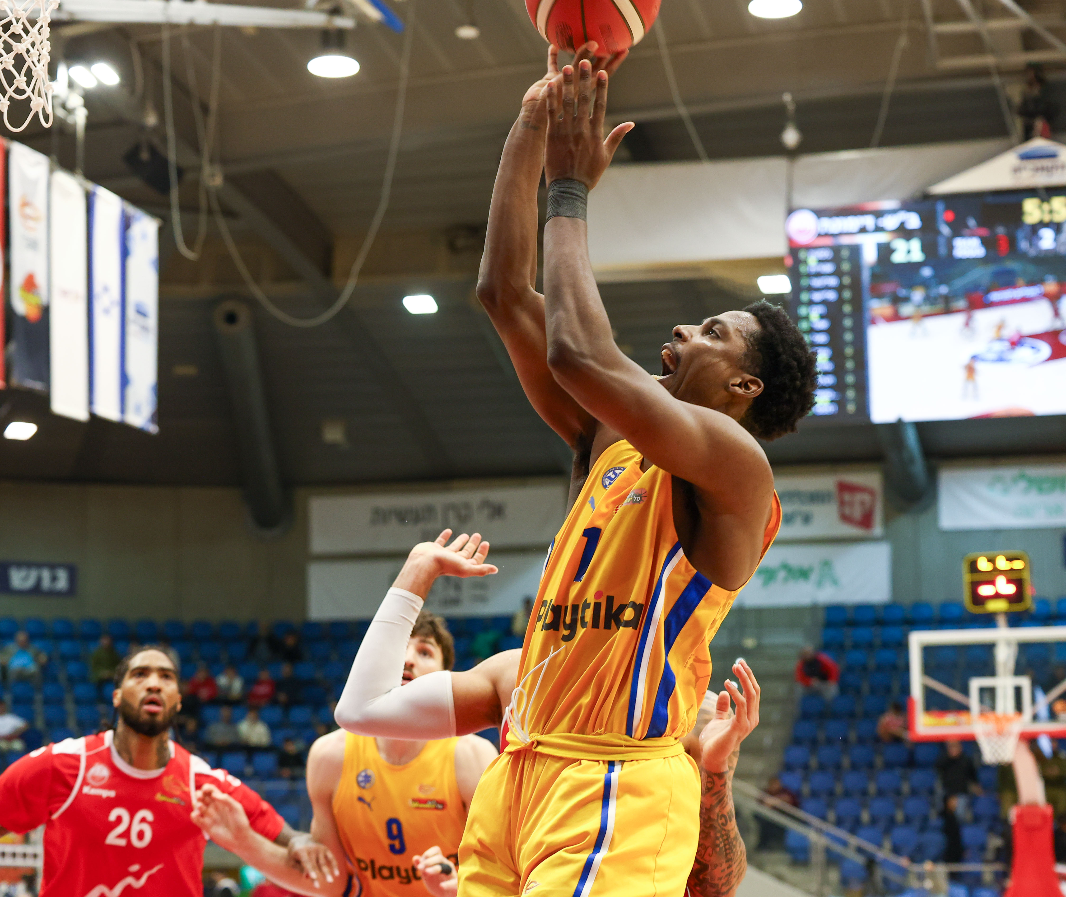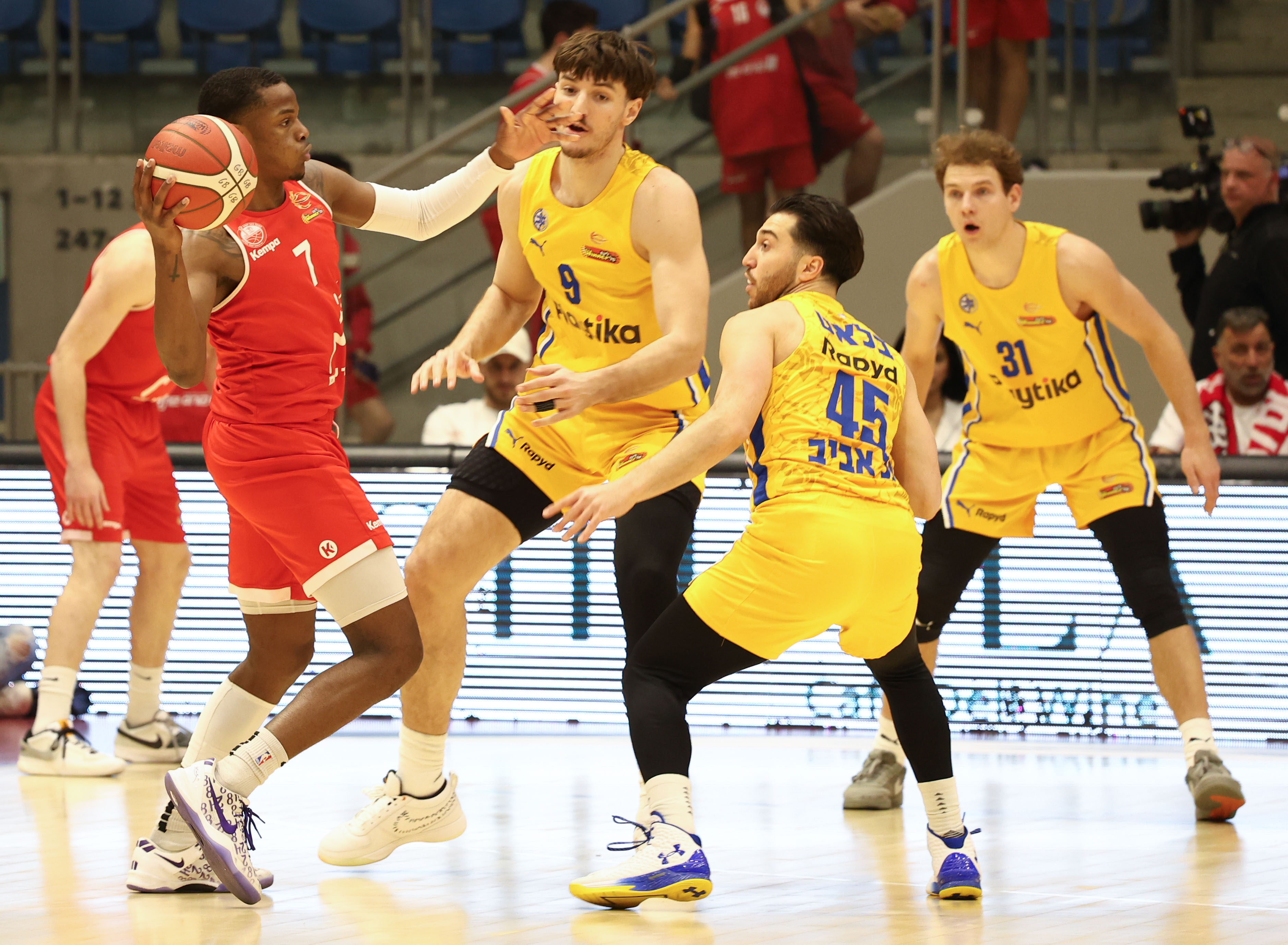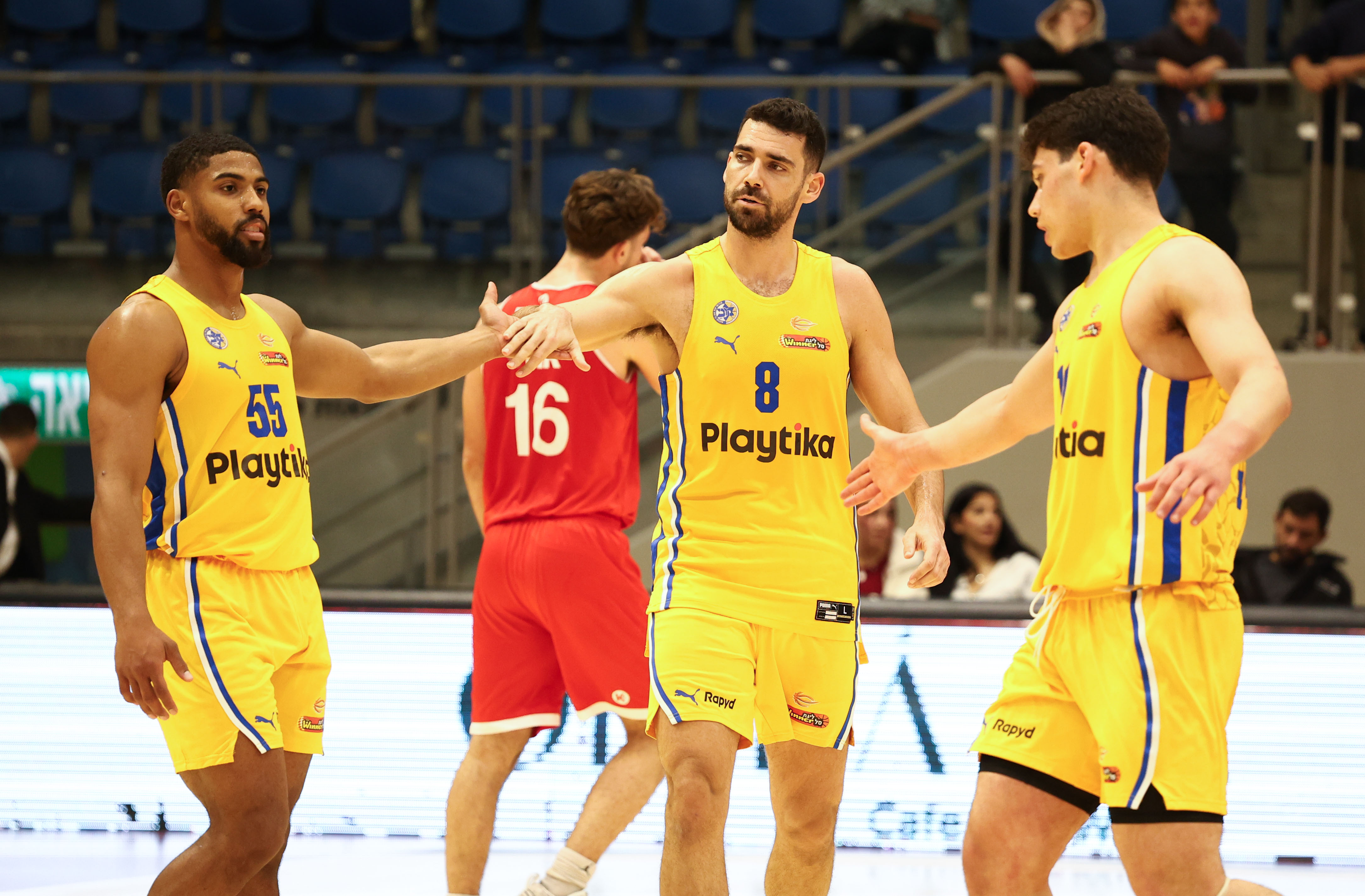 כמו במקרים רבים העונה עודד קטש שוב יכול היה לחלק את הזמנים בין חניכיו, כאשר למעט ליוואי רנדולף – ששיחק 27 דקות – אף שחקן לא מקבל יותר מ־20 כאלה, ולמרות זאת חמישה קלעים מגיעים לספרות כפולות. שני הגבוהים בעמדה חמש הובילו את הרשימה עם דומיננטיות מרשימה מתחת לסלים, כשרומן סורקין קולע 15 נקודות ב־4/5 לשתיים וב־2/2 לשלוש בעוד חסיאל ריברו נכנס לעניינים במשחק הליגה הראשון שלו מאז החזרה מהפציעה עם 14 משלו ב־7/9 לשתיים. תמיר בלאט רשם דאבל־דאבל של 13 נקודות ועשרה אסיסטים, ליוואי רנדולף תרם 12 נקודות – וכל אחד מהם דייק גם שלוש פעמים מחוץ לקשת, ב־50% וב־60% בהתאמה, כששניהם יחד אחראים על שש מעשר השלשות שקלעו הצהובים ב־41.7% יפים. ג'יילן הורד שמר כהרגלו על יציבות עם 12 נקודות משלו כולל 4/6 מקו העונשין, ואילו רוקאס יוקובאיטיס היה רחוק שתי נקודות מדו־ספרתי והוסיף גם ארבעה אסיסטים – אך גם ארבעה איבודים. רפי מנקו אומנם היה היחיד מבין חבריו שקטף יותר מארבעה ריבאונדים עם שישה כדורים חוזרים, אך קבוצתו הצליחה לנצח למרות חמישה כדורים חוזרים בלבד בהתקפה – כשהיא מחפה על כך עם 25 נקודות מאיבודים של היריבה ועם אחוזי דיוק מרשימים של 73.5% לשתיים.