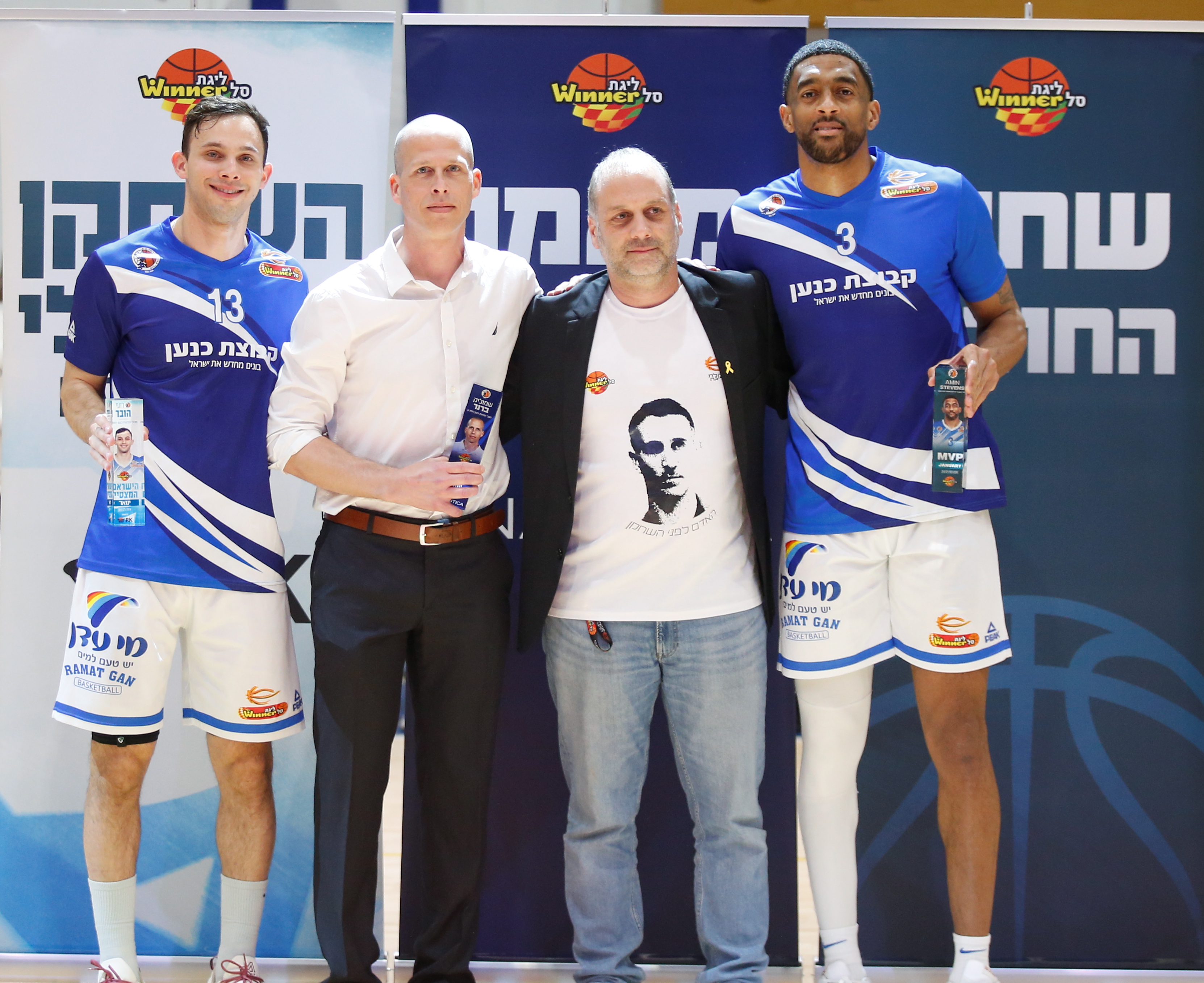 חמישיית מכבי "קבוצת כנען" רמת גן: קנדל מקולום, אדם אריאל, דרו קרופורד, אמין סטיבנס, בניה סרור.