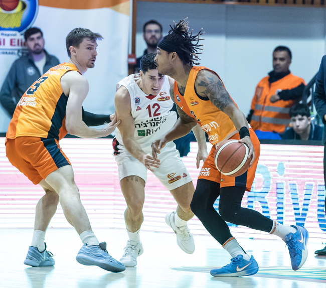 הפועל "Rivulis" גליל עליון שבה לאולמה הביתי אחרי יותר משנה, ועם 65:77 על עירוני "חי מוטורס" נס ציונה קטעה רצף הפסדים. גולדנברג כיכב (צילום: עודד קרני)