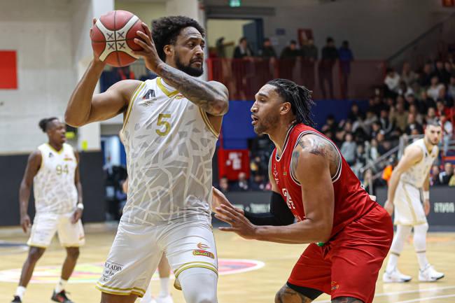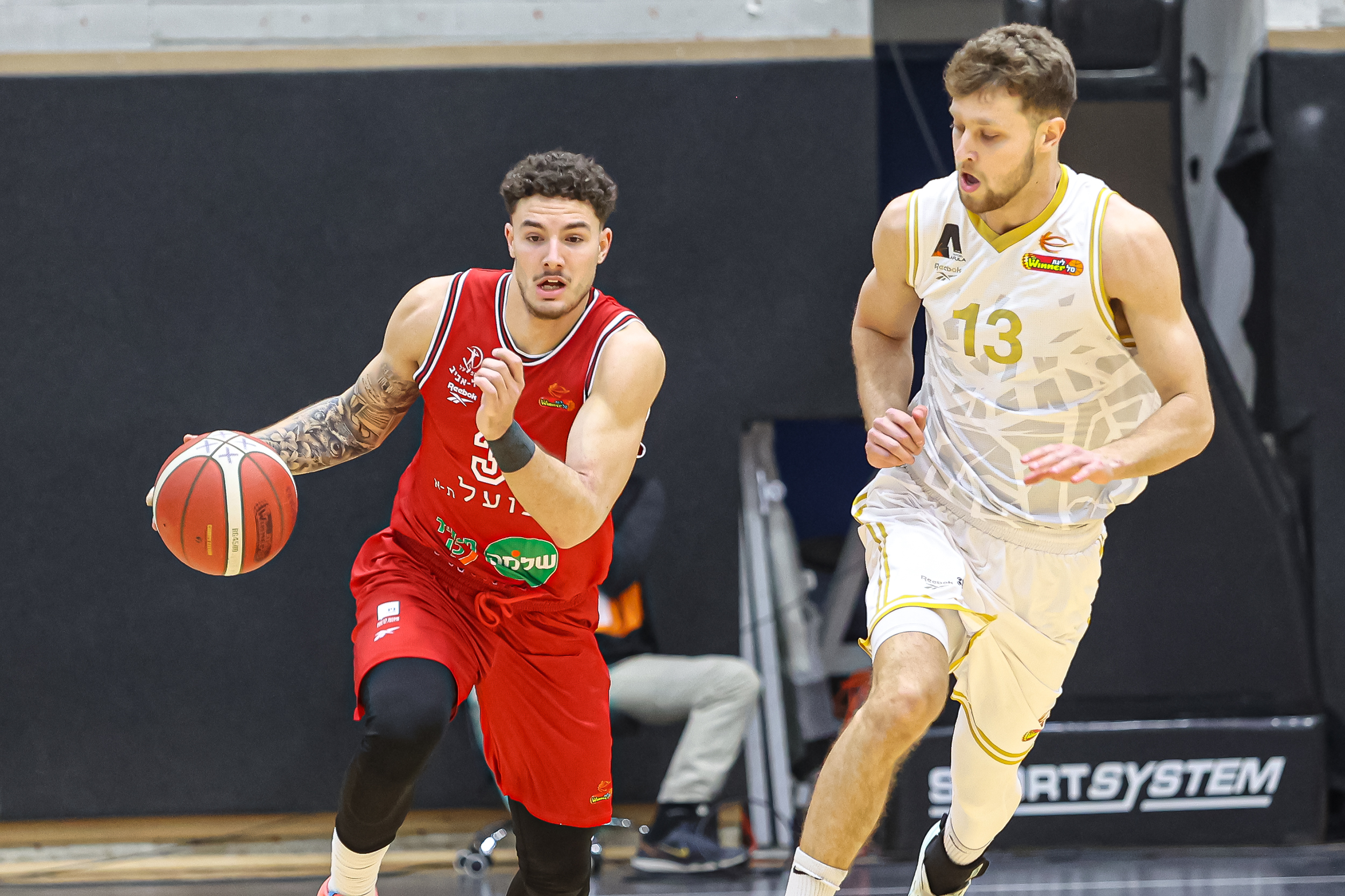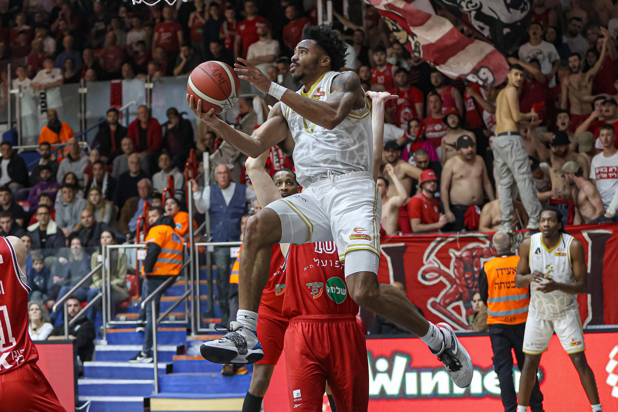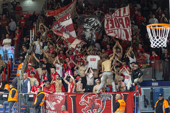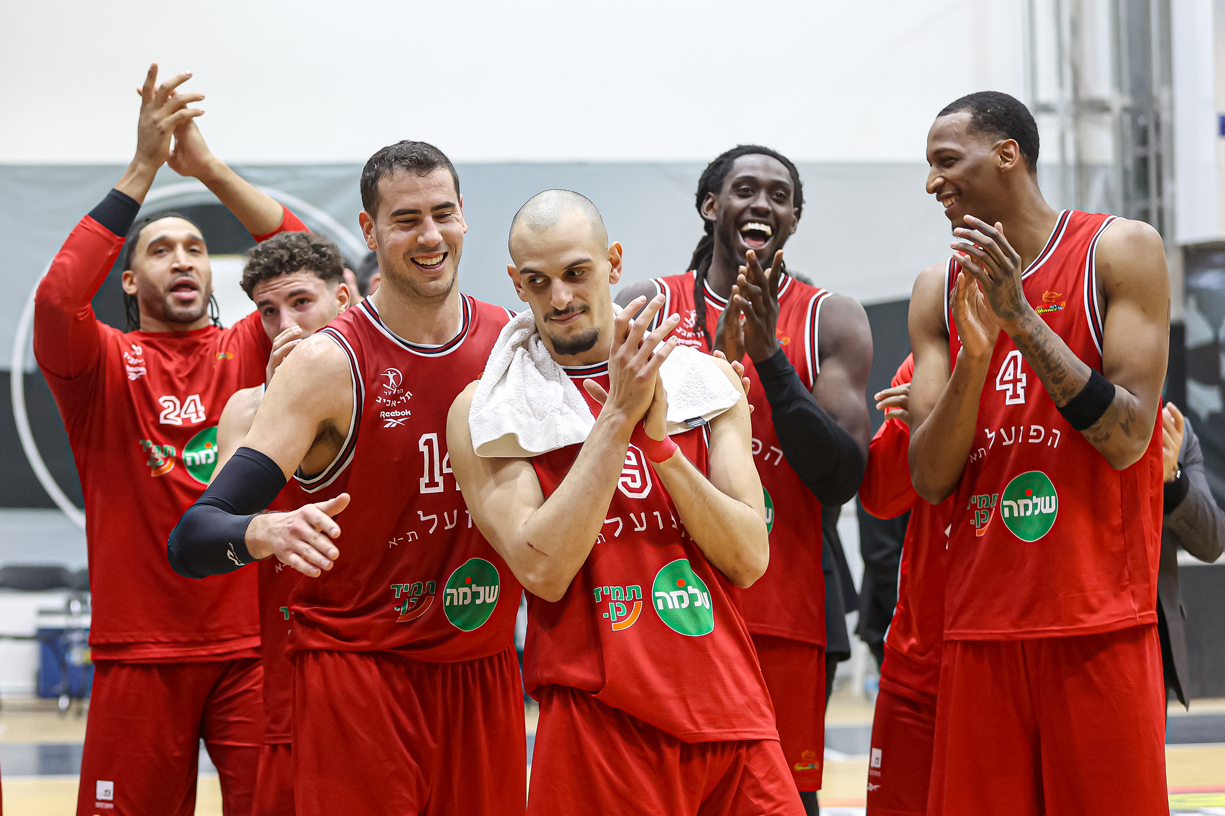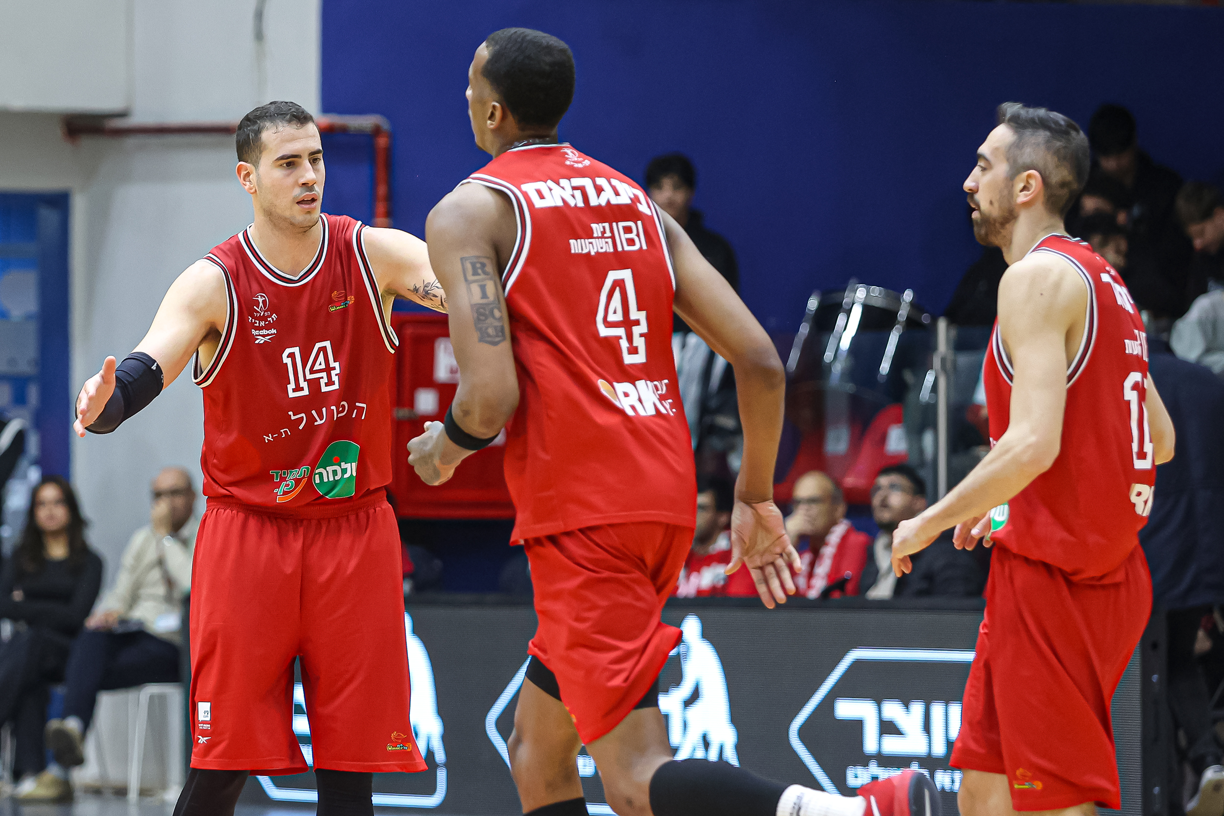 האדומים הסתדרו ללא ים מדר ותומר גינת הפצועים, כאשר פלטין – שעלה במקום הרכז בחמישייה – מצדיק את הקרדיט עם שיא עונתי של 19 נקודות, כולן ברבע השני והשלישי, כשהוא מחטיא רק אחת משבע זריקותיו מהשדה וחוטף גם שלושה כדורים בדרך למדד היעילות הגבוה ביותר בשתי הקבוצות (23). מרכוס פוסטר תרם כמות נקודות זהה כולל 6/8 לשתיים לצד שישה ריבאונדים, ואילו נועם יעקב – שחזר מפציעה ארוכה – הרשים עם 13 נקודות וחמישה אסיסטים ב־20 דקות. ג'ו רגלנד השלים רביעיית קלעים בספרות כפולות עם 11 נקודות והוביל את ההתקפה עם שבעה מתוך 21 האסיסטים של קבוצתו, שאיבדה לעומתם רק 11 כדורים, בעוד ג'ונתן מוטלי רחוק שתי נקודות וריבאונד אחד מדאבל־דאבל – כשהוא קוטף חמישה כדורים חוזרים בהתקפה ומחלק גם ארבעה אסיסטים. מי שסייעו לו במאבק מתחת לסלים עם שמונה ושבעה ריבאונדים בהתאמה היו עוז בלייזר ומרכוס בינגהאם, ששב אף הוא מהיעדרות ממושכת והוסיף שלוש חטיפות, כשהקבוצה כולה מנצחת בריבאונד בזכות 19 כדורים חוזרים בהתקפה ומתרגמת אותם ל־24 נקודות מהזדמנות שנייה. התל־אביבים הציגו התקפה מרשימה עם 11 שלשות מ־31 ניסיונות, דייקו ב־53% לשתיים וקלעו 50 נקודות בצבע מול 38 בלבד של היריבה – כשבצד השני הם חוטפים 11 כדורים ומנצלים זאת ל־29 נקודות מאיבודים, כמעט פי שניים מה־15 שייצרה המארחת משש חטיפות מנגד.