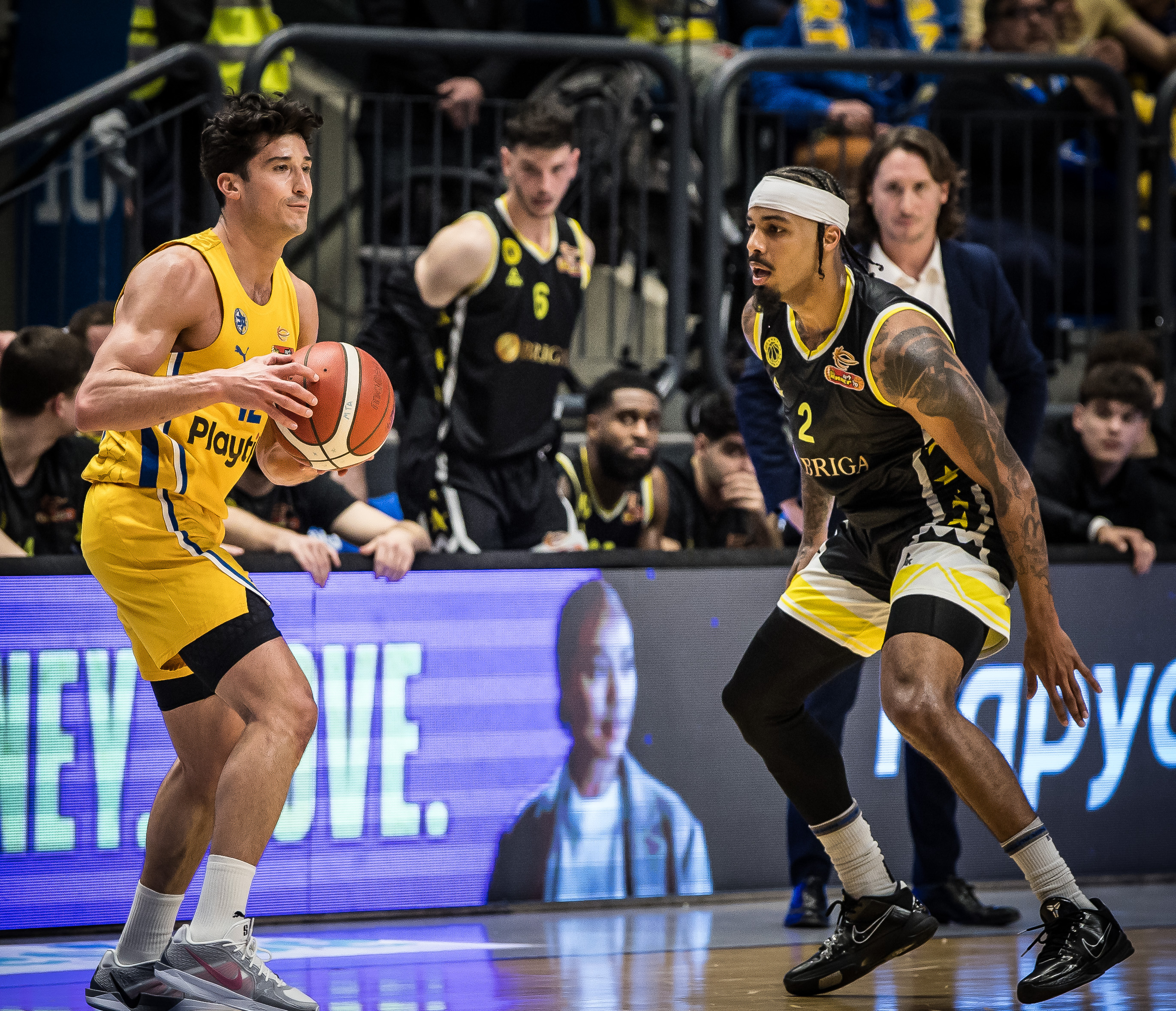 בהיעדרם של תמיר בלאט ורוקאס יוקובאיטיס, רנדולף לקח את מחזיקת הגביע הטרייה על הגב כבר במחצית הראשונה – שבה היה אחד הבודדים שתפקד בצהוב – וב־22 דקות בלבד סך הכול קלע 32 נקודות, מרחק נקודה אחת משיא הקריירה שלו בישראל, כשהוא מדייק ב־9/11 לשתיים ו־4/5 לשלוש וקובע שיא קריירה במדד (38). אחרי ההפסקה התעוררו גם שאר השחקנים, כשג'ון דיברתולומאו קולע 12 נקודות – כולל 2/4 לשלוש ו־4/4 מקו העונשין – ורומן סורקין רחוק ריבאונד אחד מדאבל־דאבל עם עשר נקודות. טרביון וויליאמס וחסיאל ריברו חיפו על חסרונו של ג'יילן הורד הפצוע עם תשע ושמונה נקודות בהתאמה כשכל אחד מהם קוטף גם שבעה ריבאונדים, וויל ריימן הצטרף גם הוא לחגיגה מחוץ לקשת עם שתי שלשות ב־40% ברבע האחרון ואילו דייויד דג'וליוס ניהל את ההתקפה עם שבעה אסיסטים מתוך ה־21 של קבוצתו – שאיבדה לעומתם רק חמישה כדורים, ובצד השני חטפה 11 פעמים בדרך ל־19 נקודות מאיבודים. שחקניו של עודד קטש סיימו את הערב עם 14 שלשות ב־40%, 56% לשתיים ו־13/13 מקו העונשין – כשהם מנצחים 7:13 בריבאונד ההתקפה וקולעים 14 נקודות מהזדמנות שנייה מול שלוש בלבד של היריבה.