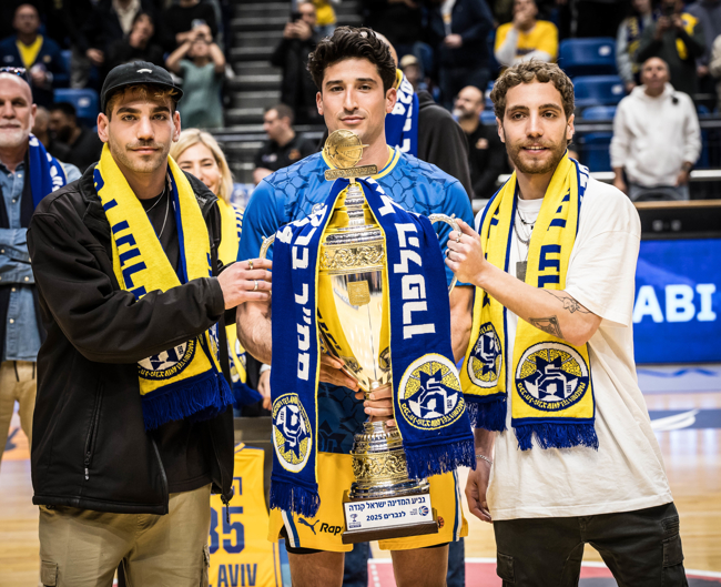 אחיו של ברק ז"ל עם הקפטן דיברתולומיאו וגביע המדינה (צילום: עודד קרני)
