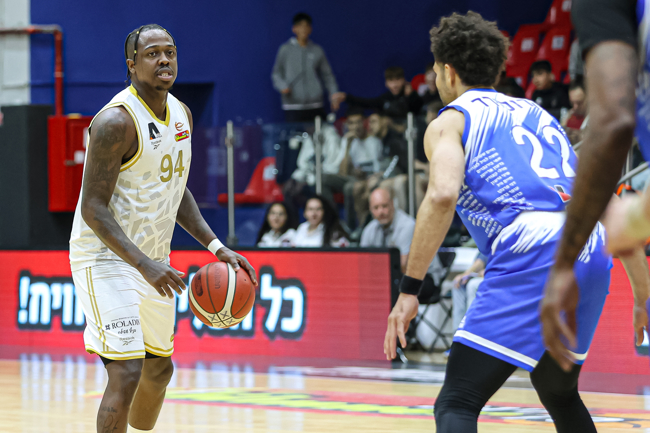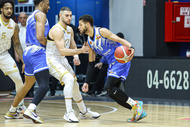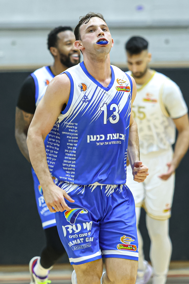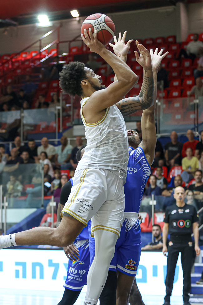 מכבי "קבוצת כנען" רמת גן הובילה מהפתיחה בדרך ל-68:84 על הפועל עפולה – שעלולה לרדת מתחת לקו האדום. 24 נקודות להובר (צילום: לילך וייס רוזנברג)