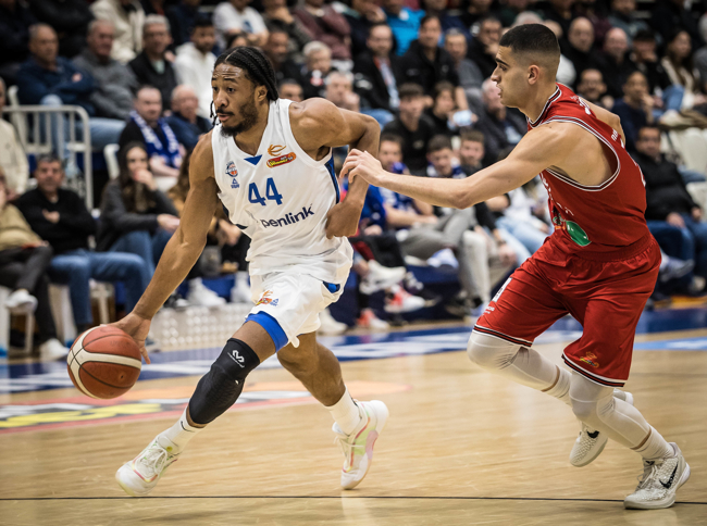 לפני חצי גמר היורוקאפ, הפועל "שלמה" ת"א הפכה ליחידה משלוש הגדולות שמנצחת את בני "Penlink" הרצליה בחוץ – 91:95. 22 למוטלי (צילום: עודד קרני)