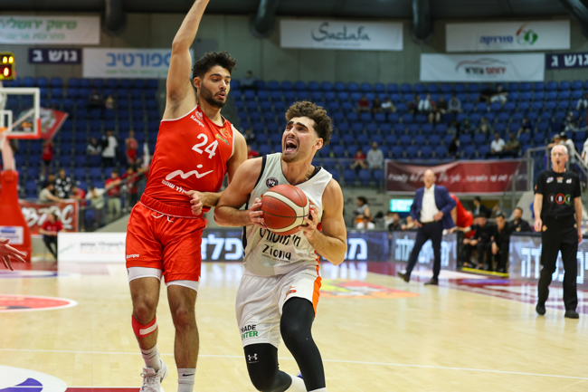 קרביץ מול ויטלם. קלע שלשה קשה בסיום הרבע (צילום: לירון מולדובן)