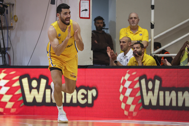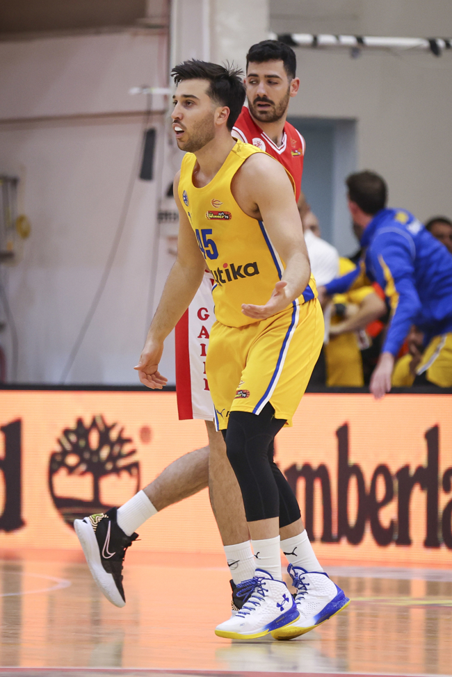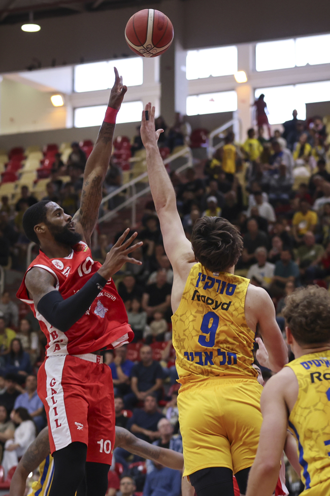 מכבי "Playtika" ת"א שוב לא הבריקה, אך גברה 73:80 על הפועל גלבוע גליל וחזרה להסתכל על הליגה מלמעלה. דאבל-דאבל מלהיב להורד (צילום: מאור אלקסלסי)