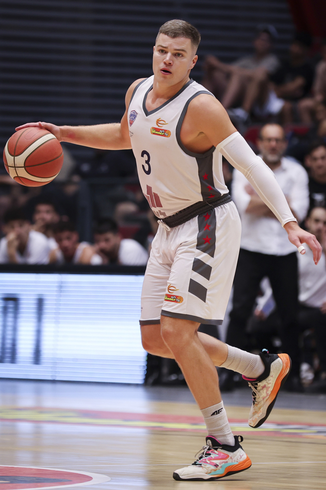 אוריילי. קלע שלשה ראשונה בריצת 0:7 של קבוצתו (צילום: מאור אלקסלסי)