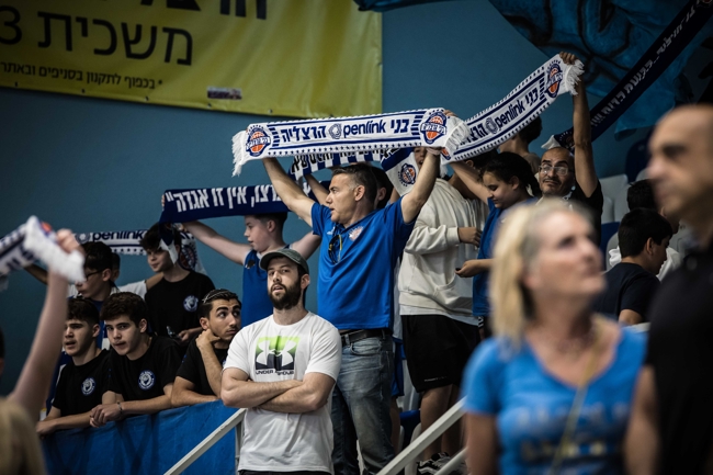 הקהל של הרצליה הגיע חמוש בצעיפים (צילום: עודד קרני)