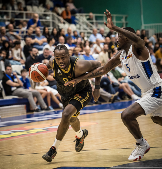 בני "Penlink" הרצליה ניצחה 92:99 את קבוצתו של אריאל בית הלחמי ותפגוש את חולון ברבע גמר הפלייאוף. מיקס להט עם 25 נק', 24 לסטיוארט (צילום: עודד קרני)