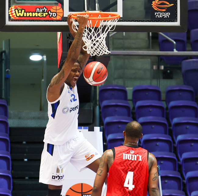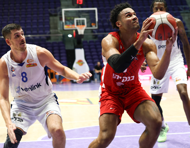 בני "PenLink" הרצליה כבר איבדה 21 נקודות יתרון מול הפועל "בנק יהב" י-ם, אבל התעלתה ברבע האחרון בדרך ל־79:83 ברבע גמר גביע ווינר סל (צילום: דני מרון)