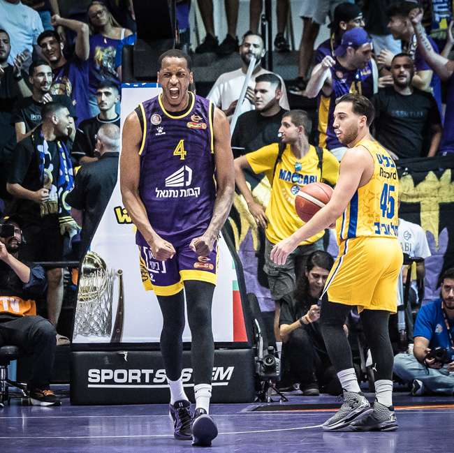 כמו לפני שנתיים, מכבי "Playtika" ת"א גברה על הפועל "קבוצת נתנאל" חולון בחצי גמר גביע ווינר סל – הפעם 75:82 – ותתמודד על התואר מול ר"ג (צילום: עודד קרני)