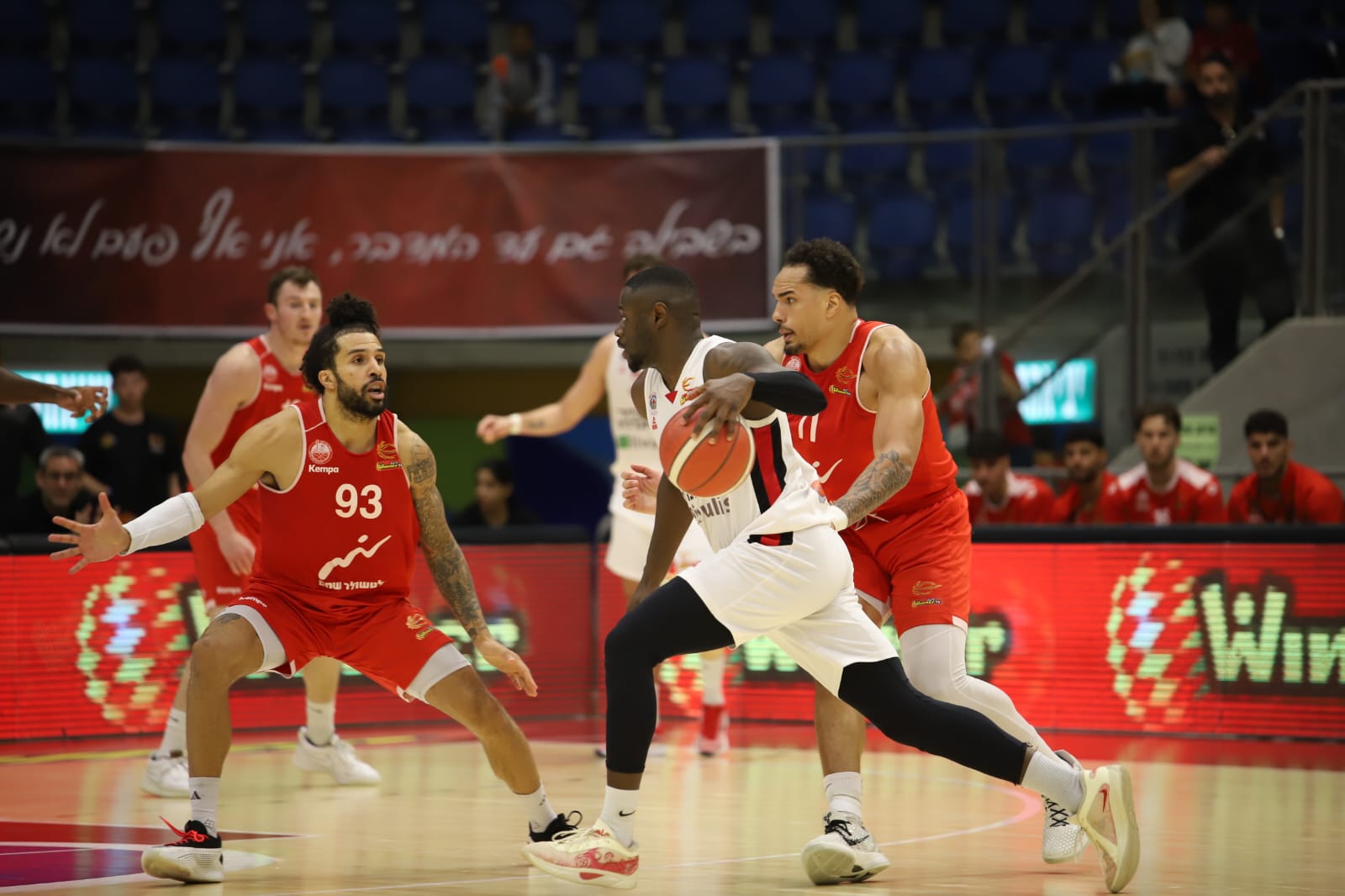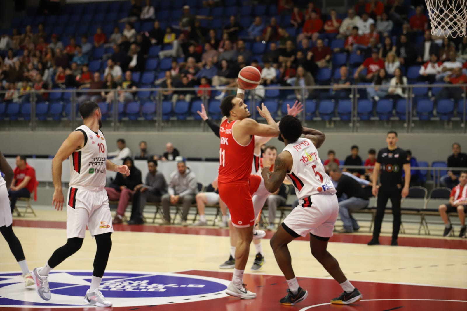 אולקינס מול דמפס. רבע ראשון דל בנקודות (צילום: באדיבות מדיה הפועל ב"ש/דימונה)