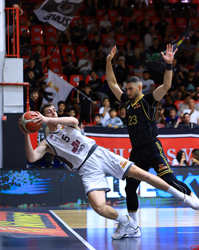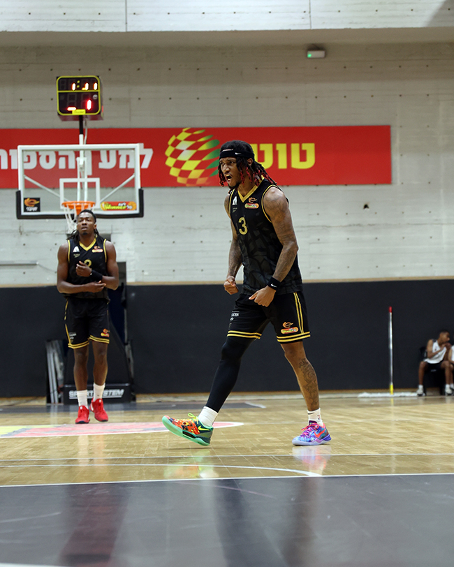 עירוני "לאטי" קריית אתא כבר פיגרה ב-13 הפרש ברבע הרביעי, לפני שגברה על הפועל עפולה 69:72 ועלתה על חשבונה מעל הקו האדום (צילום: אמיר גולדשטיין)
