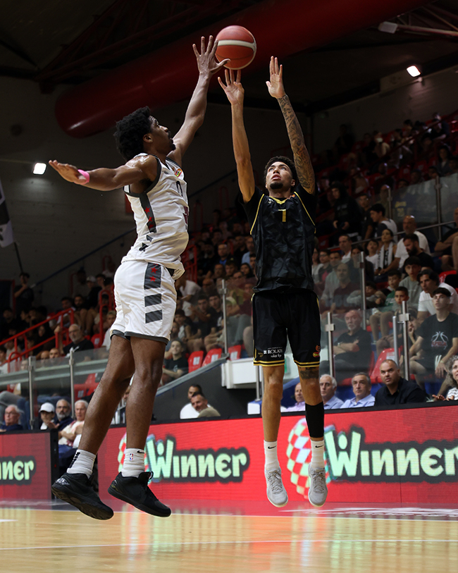 אליס זורק שלשה. פתיחה טובה גם לגארד המארחת (צילום: יוני חיים, הפועל עפולה)