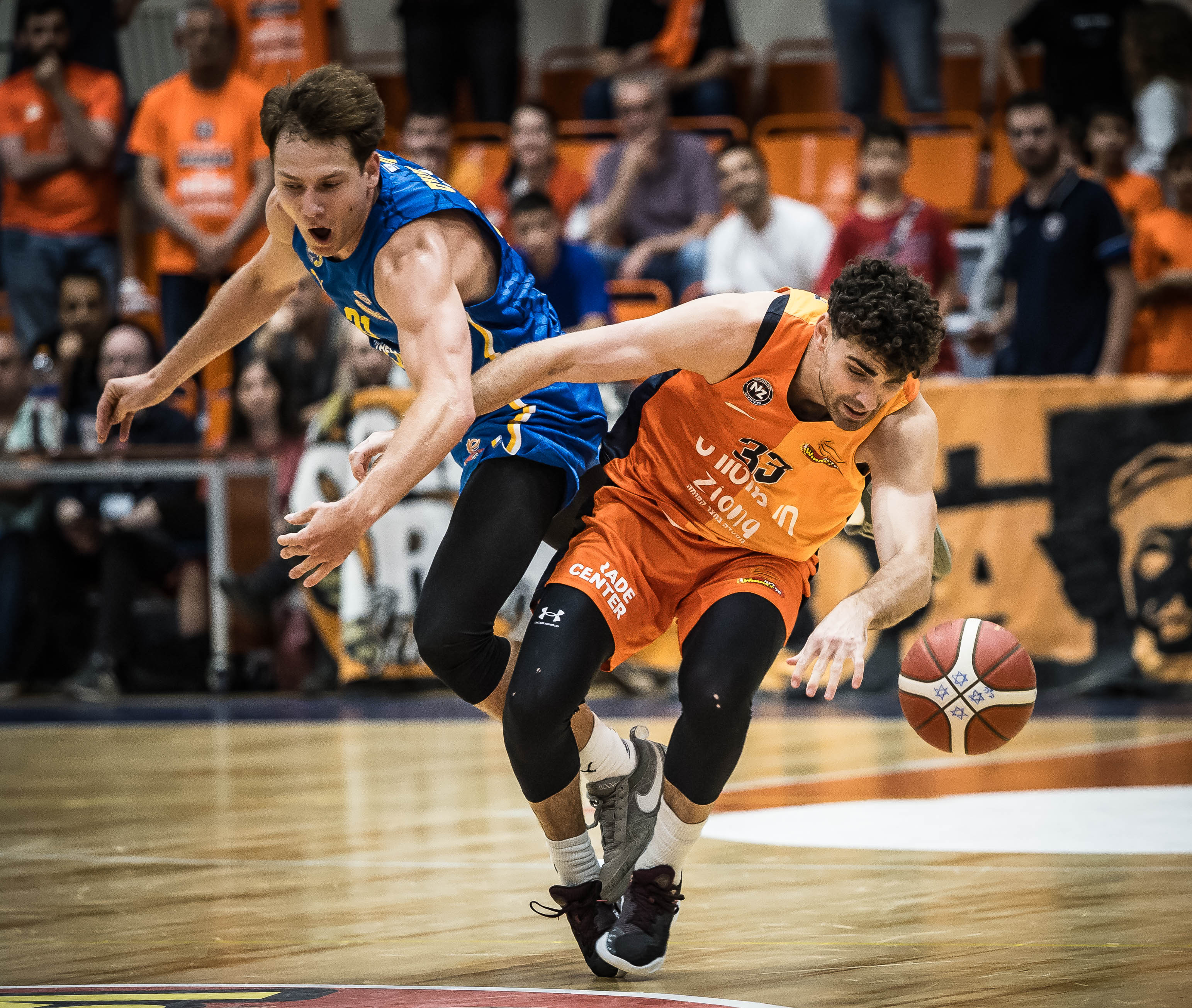 ואן־טוברגן במאבק על הכדור. מהבולטים בכתום עד להפסקה (צילום: עודד קרני)