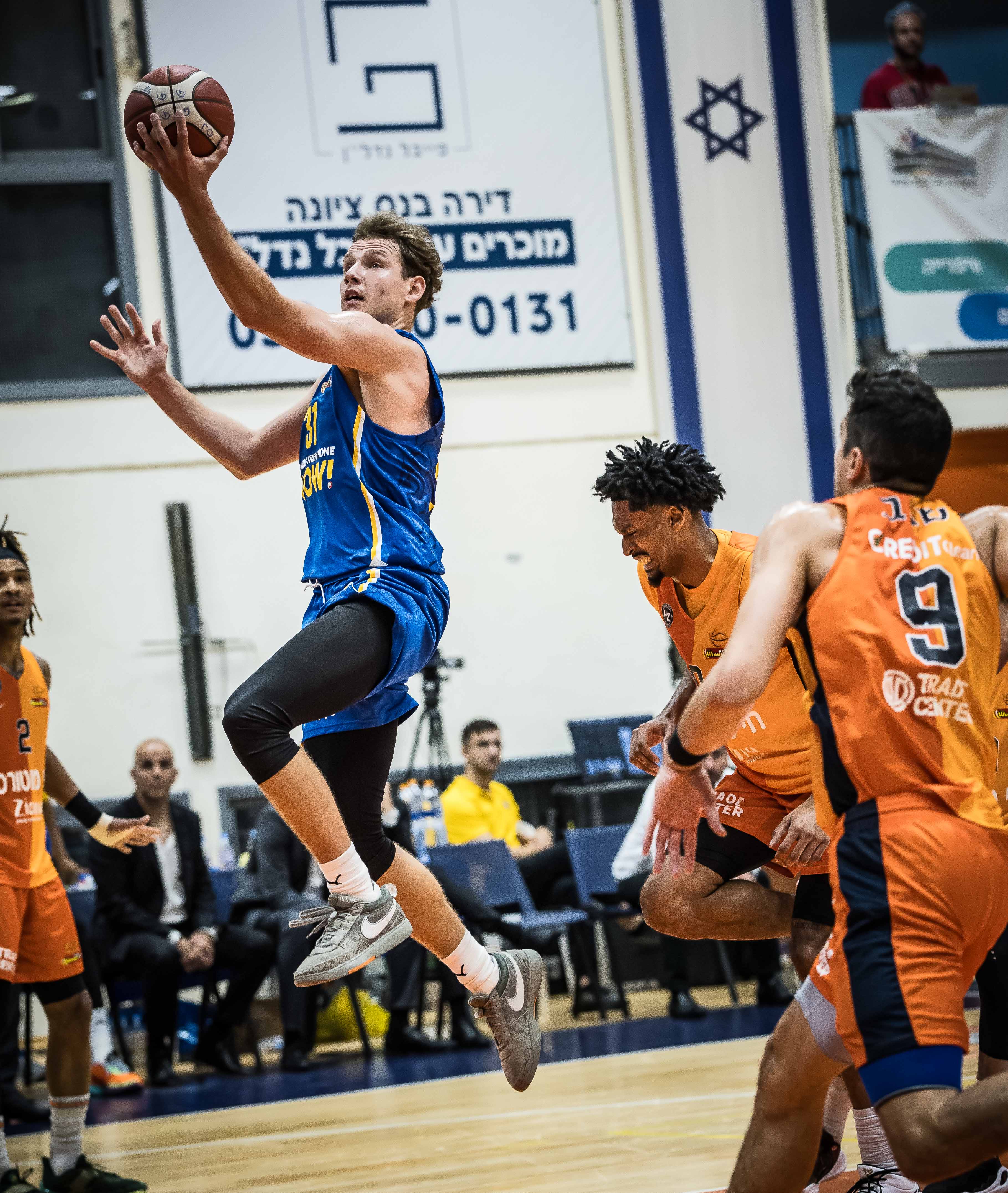 מכבי "Playtika" ת"א ברחה לעירוני "חי מוטורס" נס ציונה לקראת ההפסקה בהובלת יוקובאיטיס, ניצחה 65:83 ותוכל לסגור עניין ביום ראשון הקרוב (צילום: עודד קרני)