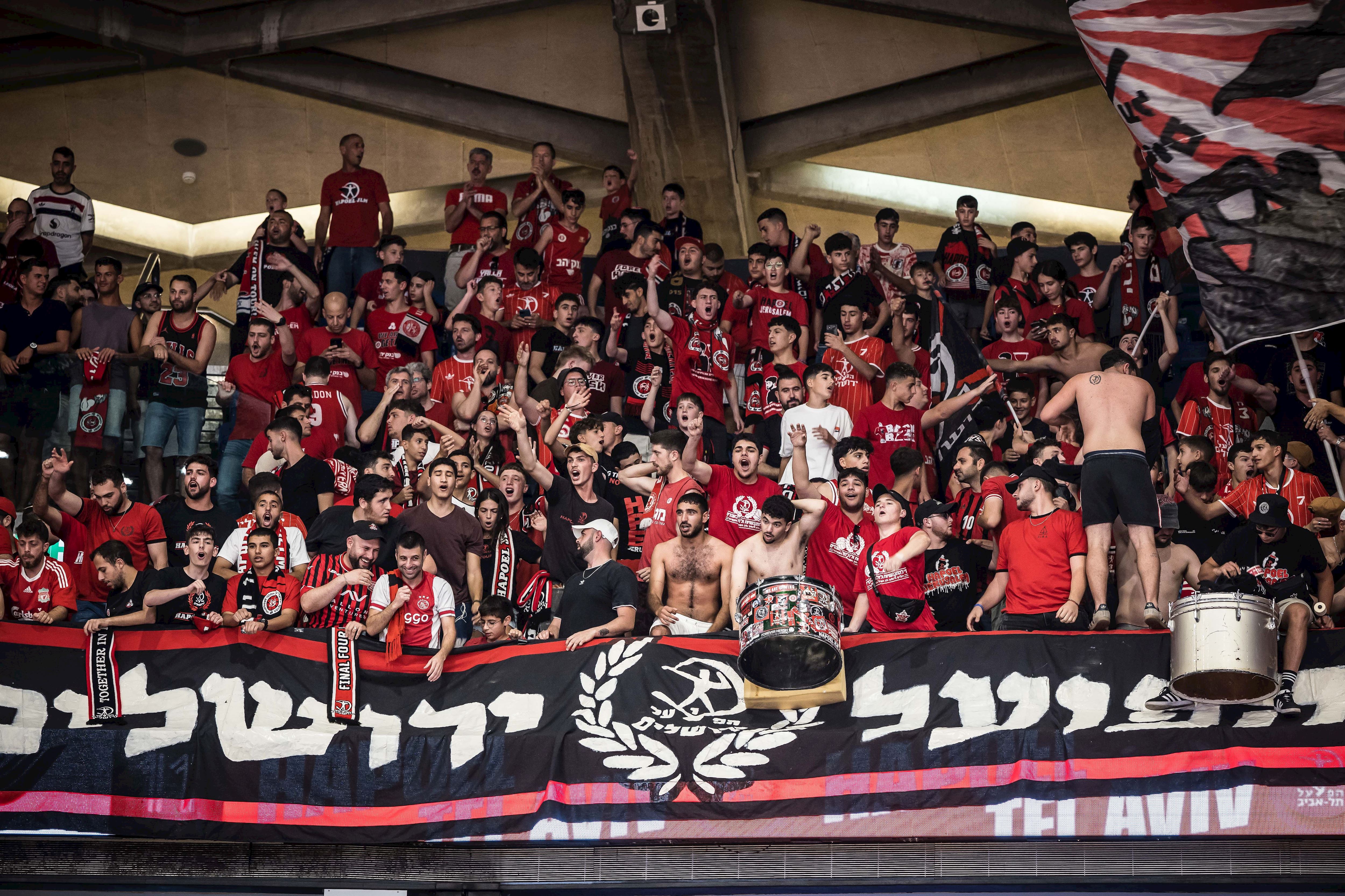 אוהדי הפועל תל אביב. עוד ניצחון והם בגמר (צילום: עודד קרני)