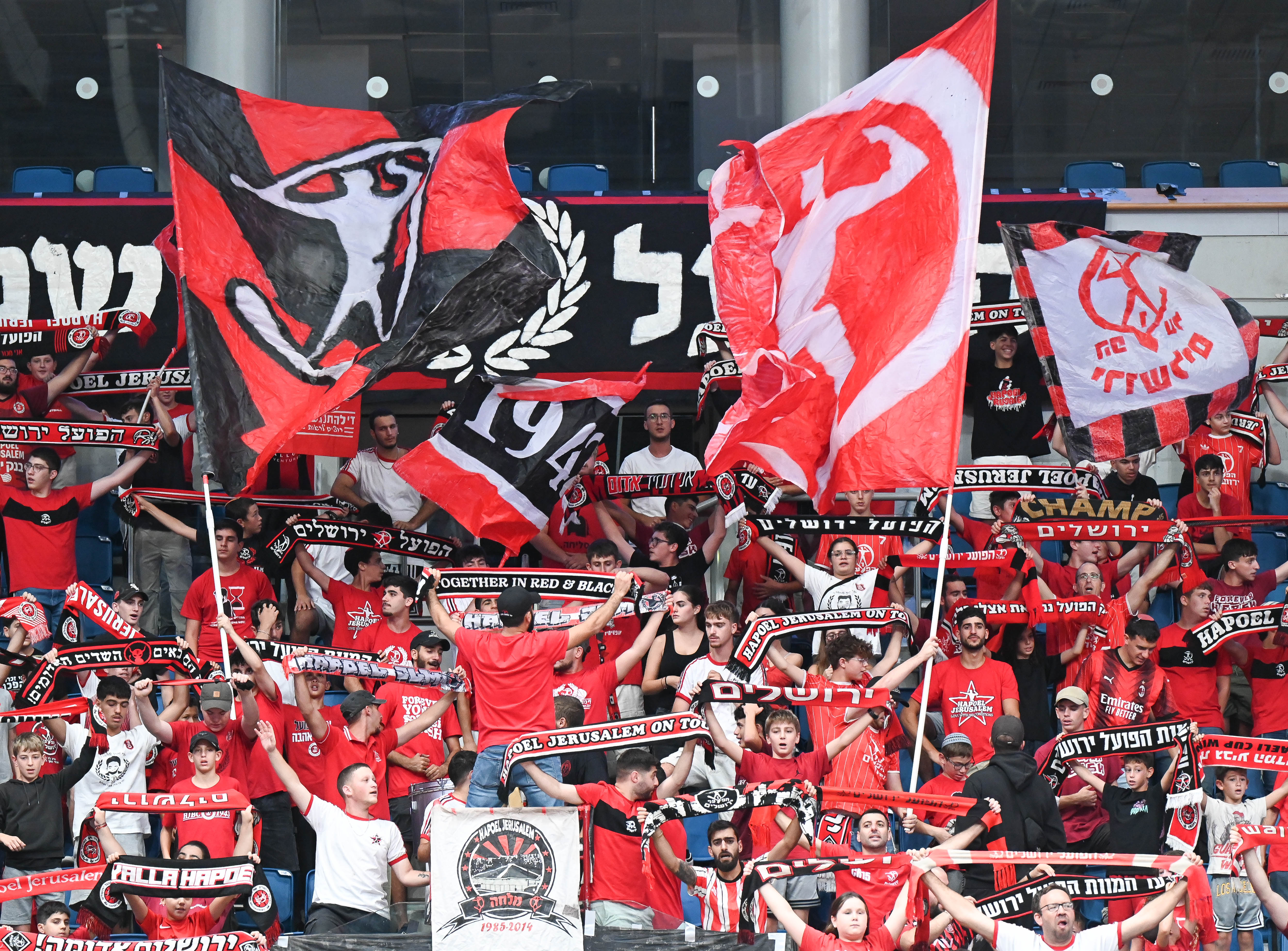 הקהל האדום ניצל את חול המועד כדי לגדוש את יציעי הפיס ארנה (צילום: ברני ארדוב)
