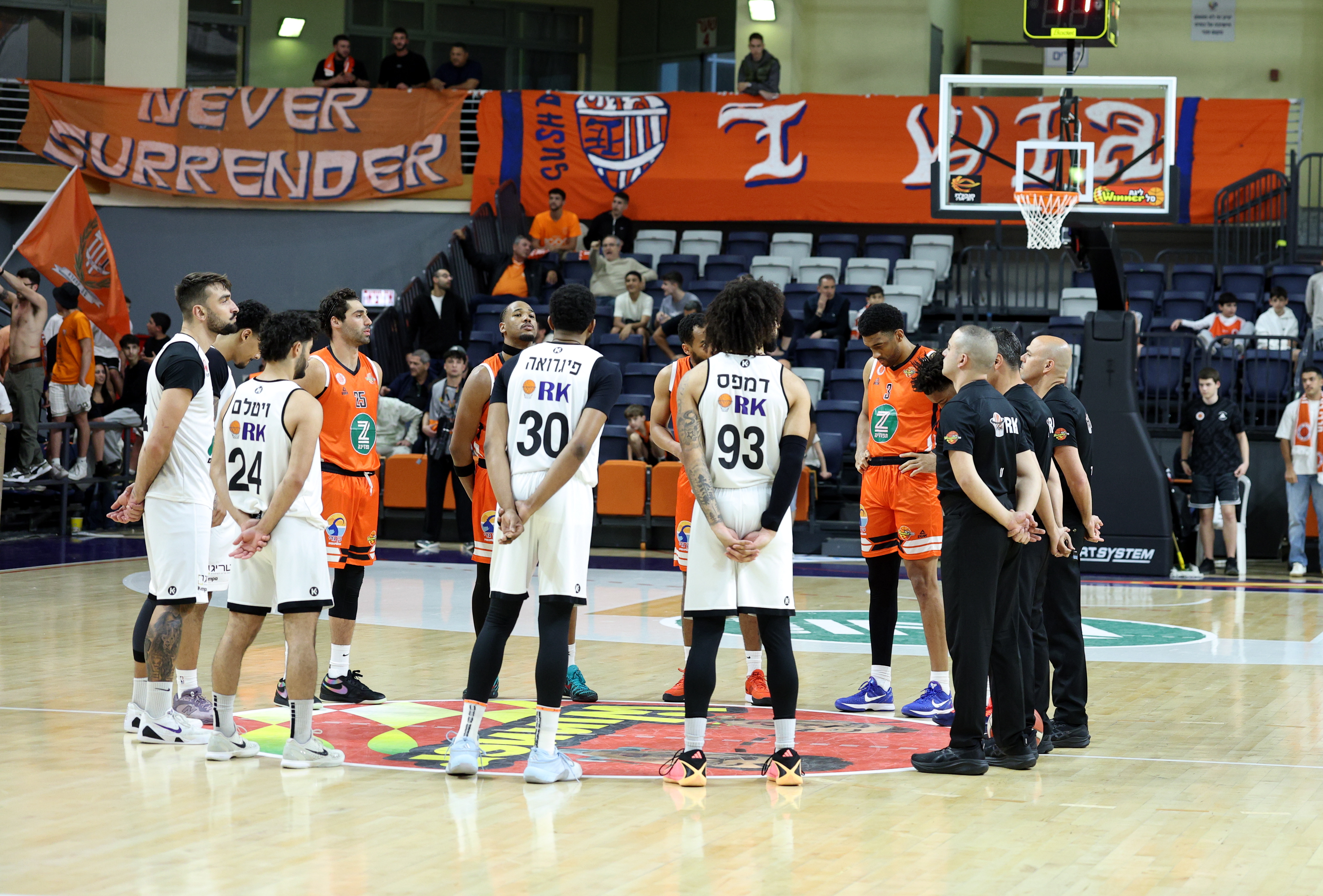 לפני המשחק נערכה דקת דומייה לזכרו של ימנו זלקה ז"ל (צילום: אלן שיבר)