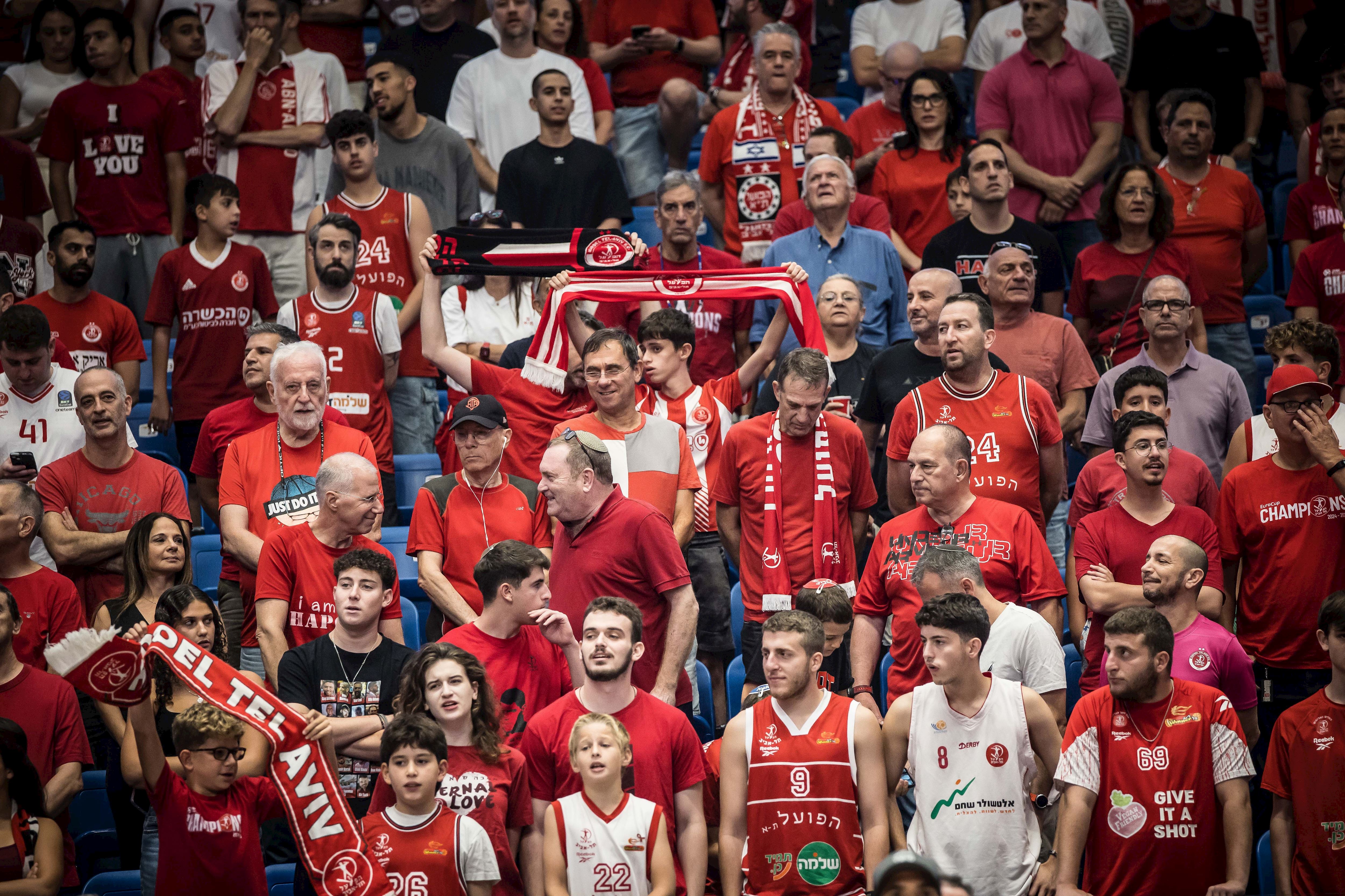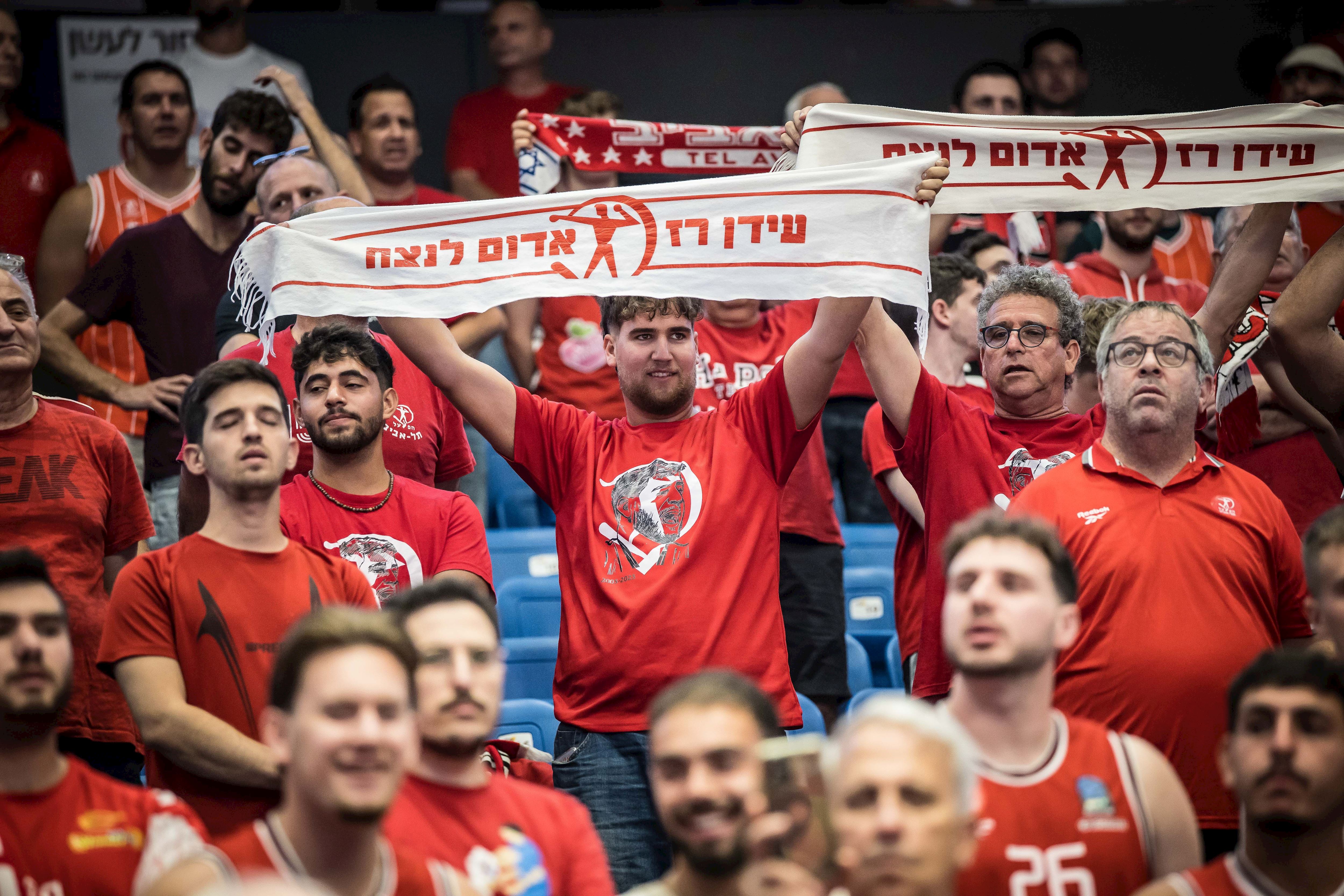 אוהדי האדומים מילאו את היכל מנורה מבטחים (צילומים: עודד קרני)