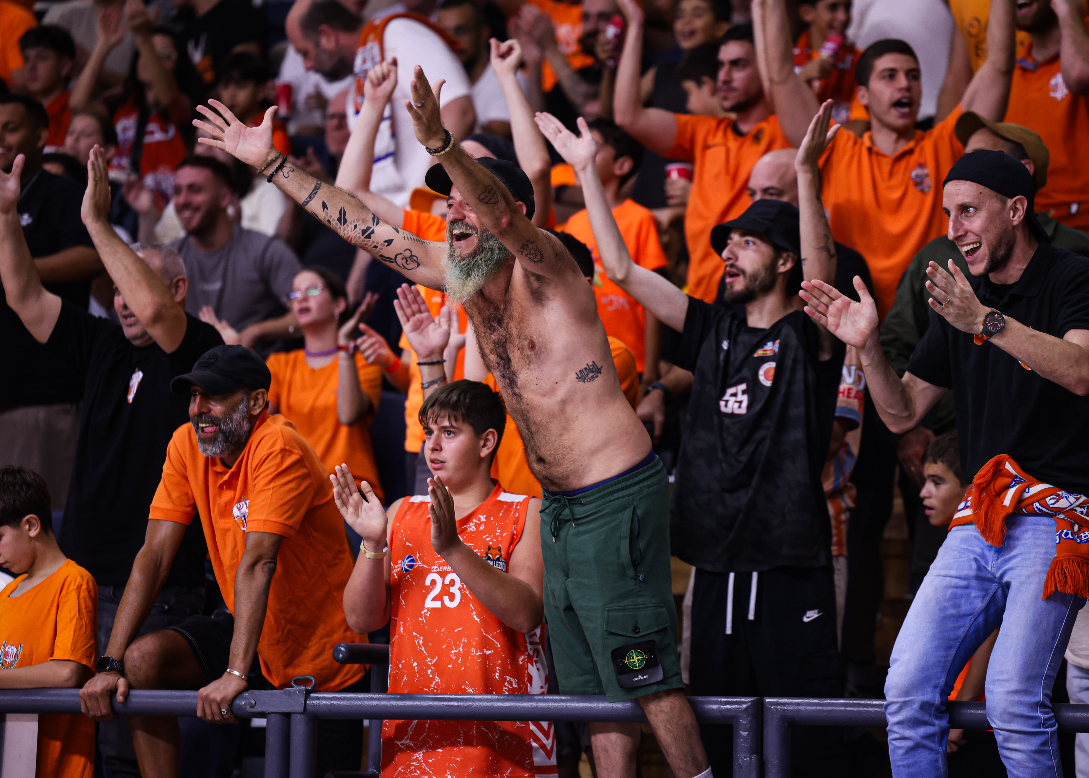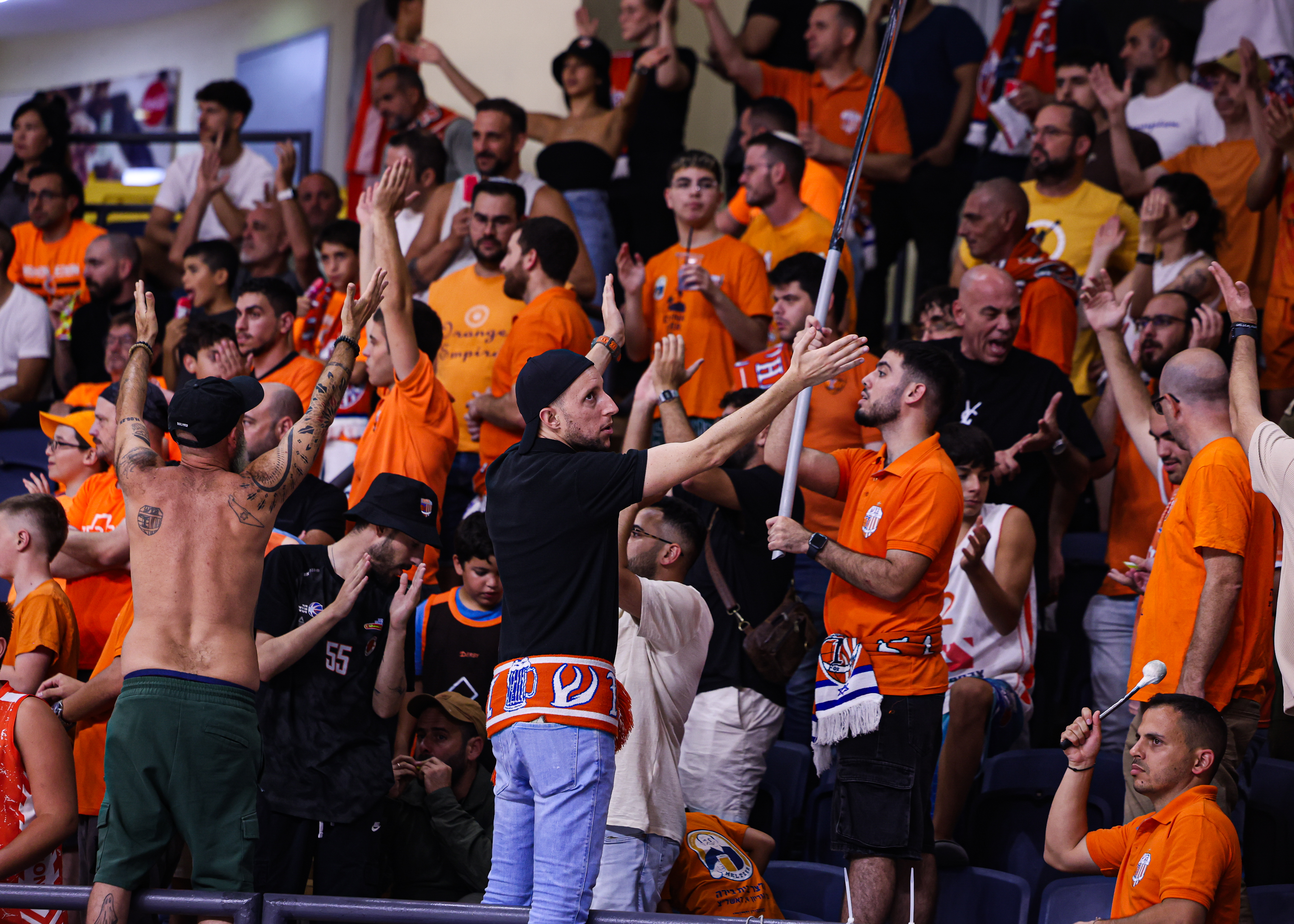 הקהל הכתום בבית מכבי התגעגע לליגה הבכירה (צילומים: אילי ארז)