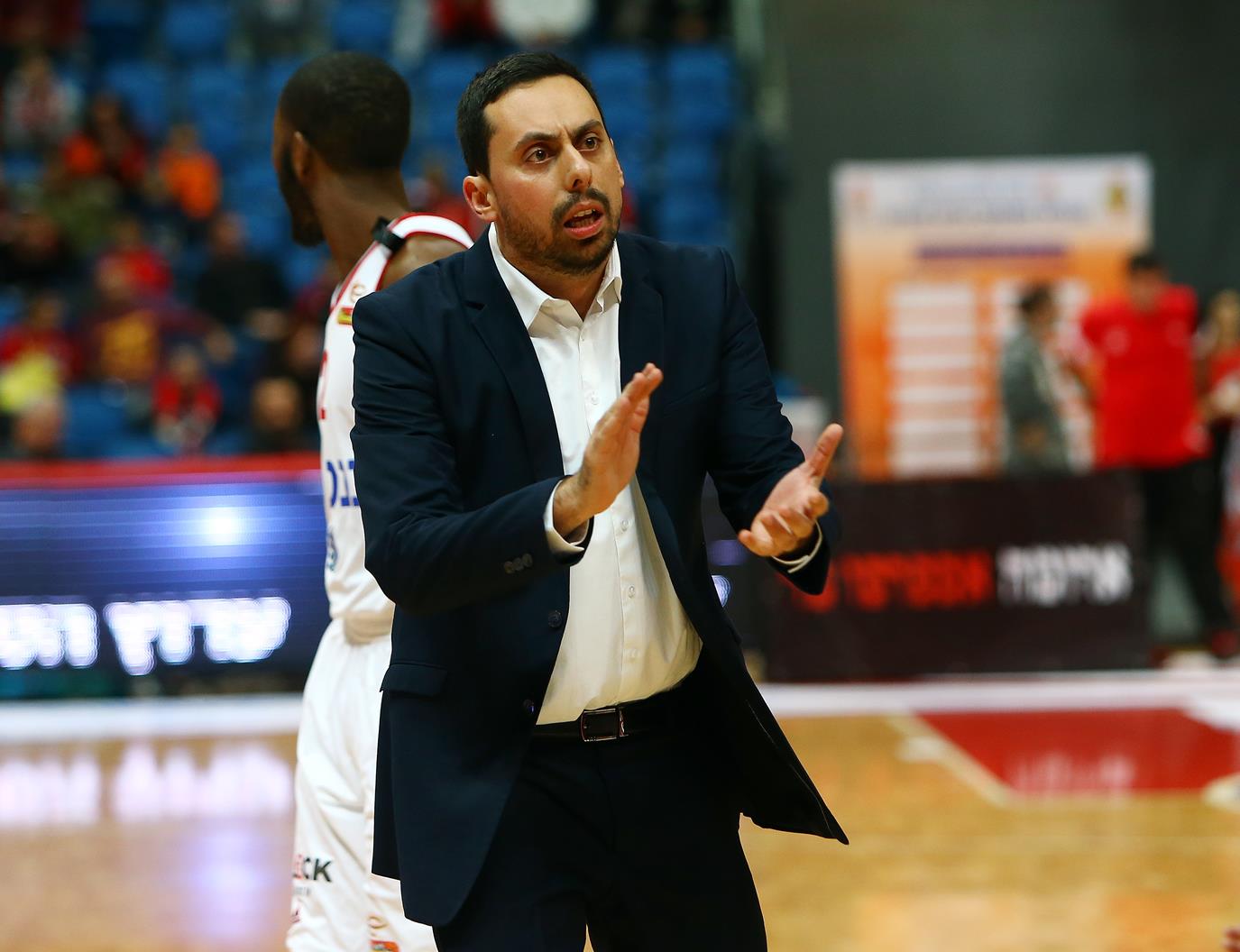 סימונה פיאניג'אני החולה נשאר בבית וראה את עוזריו מודי מאור ומרסלו ניקולה מובילים את הפועל "בנק יהב" ירושלים ל-50:89 על קריית גת (צילום: אודי ציטיאט)
