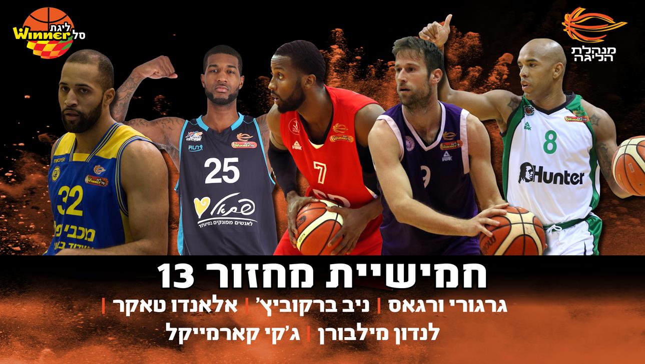 לצידו בחמישייה: גרגורי ורגאס שרשם פרמיירה מחודשת מרשימה והוביל את ההתקפה המאוזנת של מכבי "Hunter" חיפה מול בני הרצליה עם 10 נקודות ו-11 אסיסטים; ניב ברקוביץ' שרשם 11 נקודות, 7 ריבאונדים ו-7 אסיסטים בניצחון החוץ הגדול של עירוני נהריה על הפועל "יונט" חולון; אלאנדו טאקר שקלע 20 נקודות, כולל שלשת ניצחון גדולה, במותחן בו גברה הפועל "SP מצרפלס" ת"א על מכבי "ראנד מדיה" ראשל"צ; וג'קי קארמייקל, שבמשחקו השני העונה עבור מכבי "קפלן" אשדוד/באר טוביה רשם 16 נקודות (7-7 מהשדה) ו-11 ריבאונדים בניצחון על הפועל גלבוע/גליל.