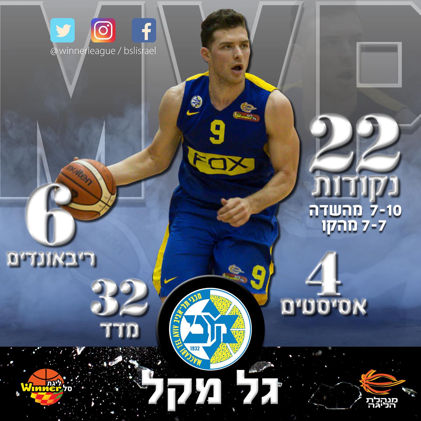 מקל הוביל את קלעי הקבוצה שבוע שני ברציפות בליגה, עם 22 נקודות באחוזים נהדרים: 7 מ-10 מהשדה ו-7 מ-7 מהקו. הוא הוסיף גם 6 ריבאונדים, 4 אסיסטים ו-2 חטיפות בדרך למדד 32 ב-25 דקות, וכשחולון כמעט ביצעה קאמבק ברבע האחרון, הוא דאג להבטיח את הניצחון עם 6 הנקודות האחרונות של מכבי במשחק.