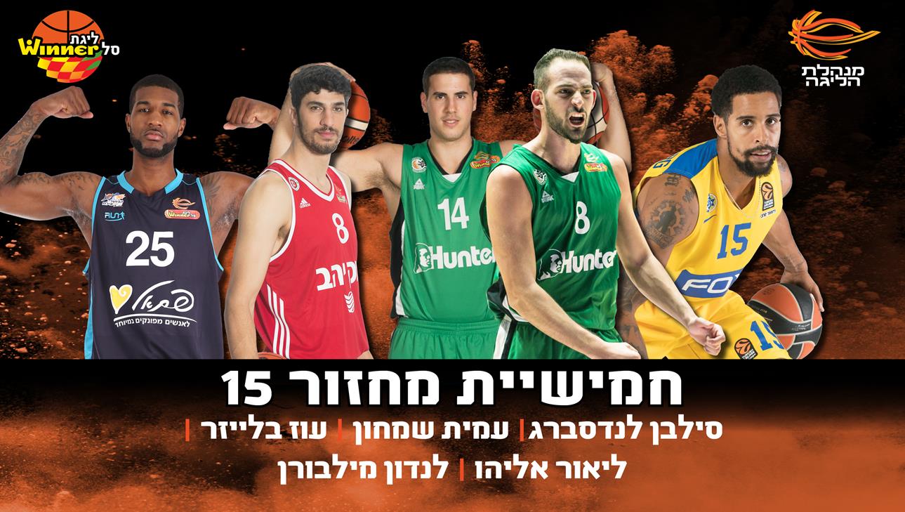 לצידם בחמישייה: סילבן לנדסברג שבלט בניצחון מכבי "FOX" ת"א על הפועל "SP מצרפלס" ת"א עם 18 נקודות ו-6 ריבאונדים; ליאור אליהו שתרם 18 נקודות, 6 ריבאונדים ו-3 חטיפות בניצחון החוץ הדרמטי של הפועל "בנק יהב" ירושלים על עירוני נהריה; ולנדון מילבורן שקלע 20 נקודות בניצחון הפועל "פתאל" אילת על בני הרצליה.