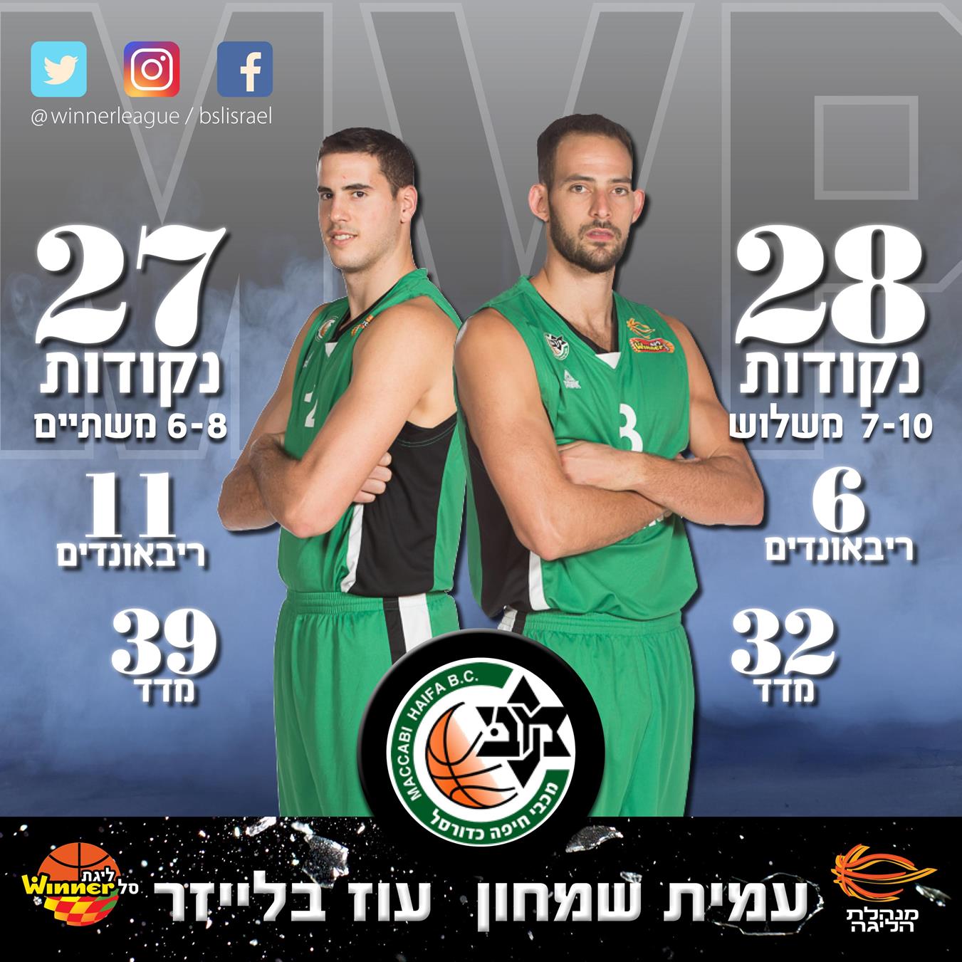 55 נקודות, 10 שלשות, 17 ריבאונדים, 6 אסיסטים ומדד 71 – אלו המספרים המשותפים של עמית שמחון ועוז בלייזר במחזור שעבר. צמד הפורוורדים קבעו שיאי קריירה בקליעה, הובילו את מכבי "Hunter" חיפה לניצחון חוץ חשוב על הפועל גלבוע/גליל תוך קביעת שיא מועדון חדש של 16 שלשות ונבחרו במשותף לשחקני המחזור ה-15 בליגת ווינר סל.