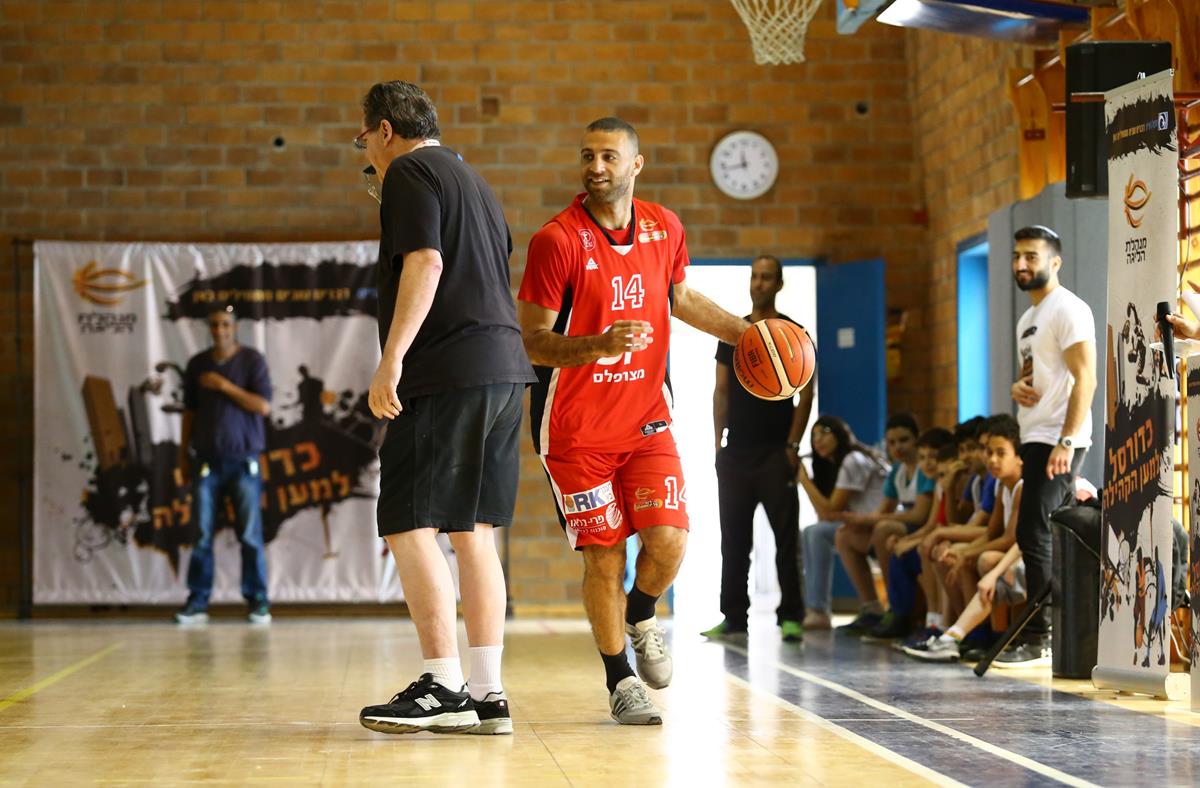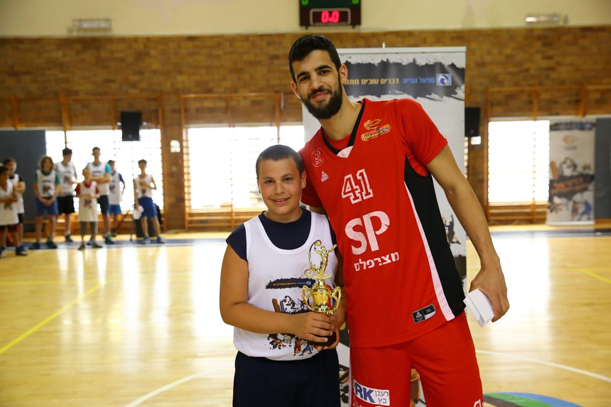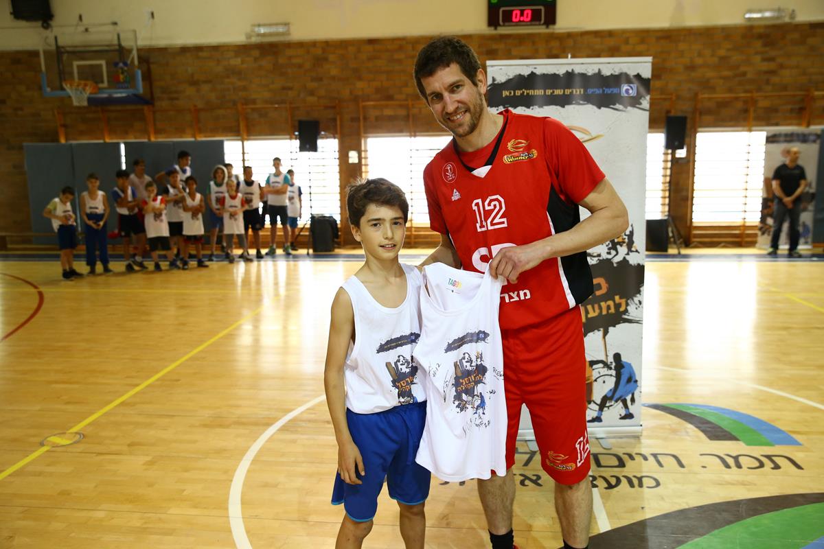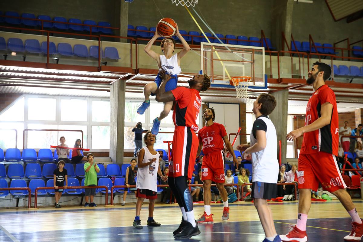 אריק בריאלובסקי נהנה מהביקור של הפועל "SP מצרפלס" ת"א בעין גדי במסגרת "כדורסל למען הקהילה". רביב לימונד: "מקבלים המון מהילדים" (צילום: לירון מולדובן)