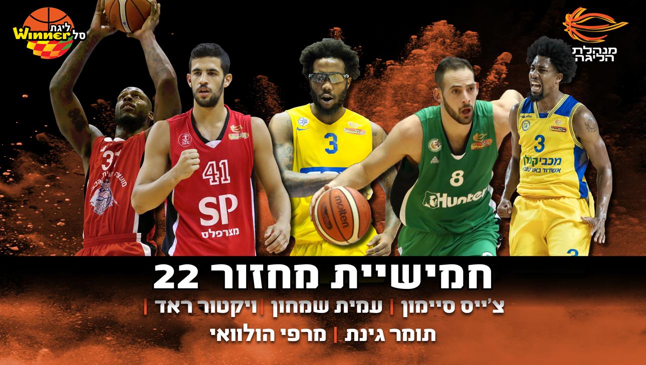 לצידו בחמישייה: צ'ייס סיימון שהפגיז 29 נקודות וחמש שלשות בניצחון השלישי ברציפות של מכבי "קפלן" אשדוד/באר טוביה מול בני הרצליה; עמית שמחון שעלה פצוע וקלע 21 נקודות עבור מכבי "Hunter" חיפה בניצחון על האקסית הפועל "פתאל" אילת; ויקטור ראד שקלע שיא עונתי של 25 נקודות והעניק למכבי "FOX" ת"א ניצחון על מכבי "ראנד מדיה" ראשל"צ עם סל בשנייה האחרונה; ומרפי הולוואי שהוביל את הפועל גלבוע/גליל לניצחון חוץ חשוב על עירוני נהריה עם 18 נקודות ו-13 ריבאונדים.