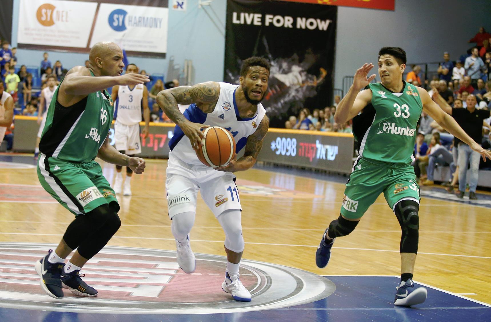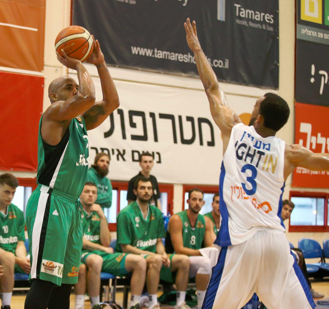 אחרי 39.5 דקות חלשות, נכנס טוריאן גרין לזון משלו ועם יכולת אדירה במאני טיים העניק לבני הרצליה 94:96 בהארכה על מכבי "Hunter" חיפה (צילום: אלן שיבר)
