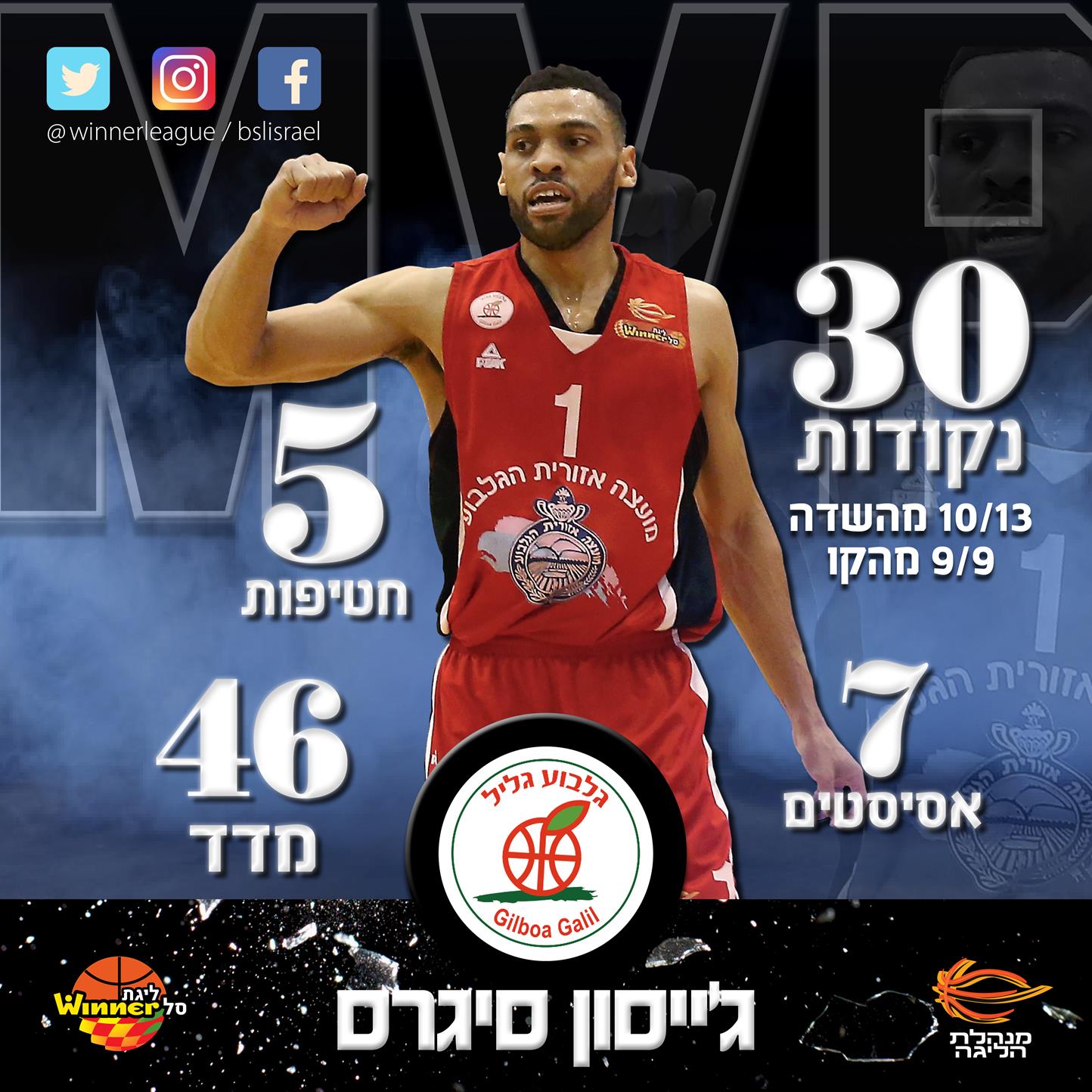 לא מעט שחקנים ניפצו שיאים במחזור ה-31 של ליגת ווינר סל, אבל מעל כולם עמד אחד: ג'ייסון סיגרס. הגארד של הפועל גלבוע/גליל קבע שיא ליגה עונתי עם מדד 46 (הנתון הכי גבוה מאז אפריל 2015), שמר על הסיכוי של האדומים לעלות לרבע גמר הפלייאוף והקדים במעט את טרנס קינסי וג'ו אלכסנדר בבחירה למצטיין המחזור.