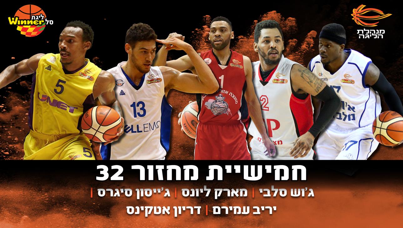 לצידו בחמישייה: ג'וש סלבי שהוביל את מכבי קריית גת לניצחון חוץ סנסציוני על הפועל "פתאל" אילת עם 22 נקודות ו-8 אסיסטים; מארק ליונס שעזר להפועל "SP מצרפלס" ת"א לעצור את רצף ההפסדים עם 30 נקודות, 9 אסיסטים ומדד 36 מול מכבי "קפלן" אשדוד/באר טוביה; יריב עמירם ששיחק 40 דקות נהדרות בניצחון בני הרצליה על עירוני נהריה ותרם 14 נקודות, 7 ריבאונדים ומדד 18; ודריון אטקינס שריחף בניצחון של הפועל "יונט" חולון על מכבי "ראנד מדיה" ראשל"צ ל-24 נקודות, 9 ריבאונדים ו-5 הטבעות.