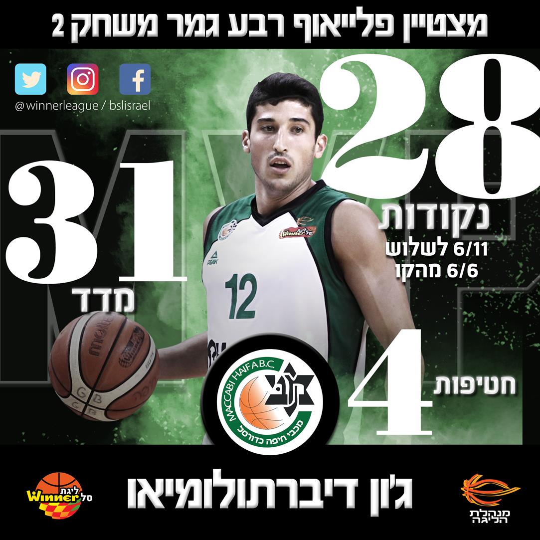 אחד השחקנים הכי חמים בפלייאוף עד כה הוא ג'ון דיברתולומיאו. הגארד של מכבי "Hunter" חיפה מדורג שני עד כה ברבע הגמר רק לטו הולוואי במדד (25.5) ובנקודות (23.5), שלישי בפלוס-מינוס (33+) ובחטיפות (2.0) וחמישי ביחס אסיסטים לאיבודים (5.0).