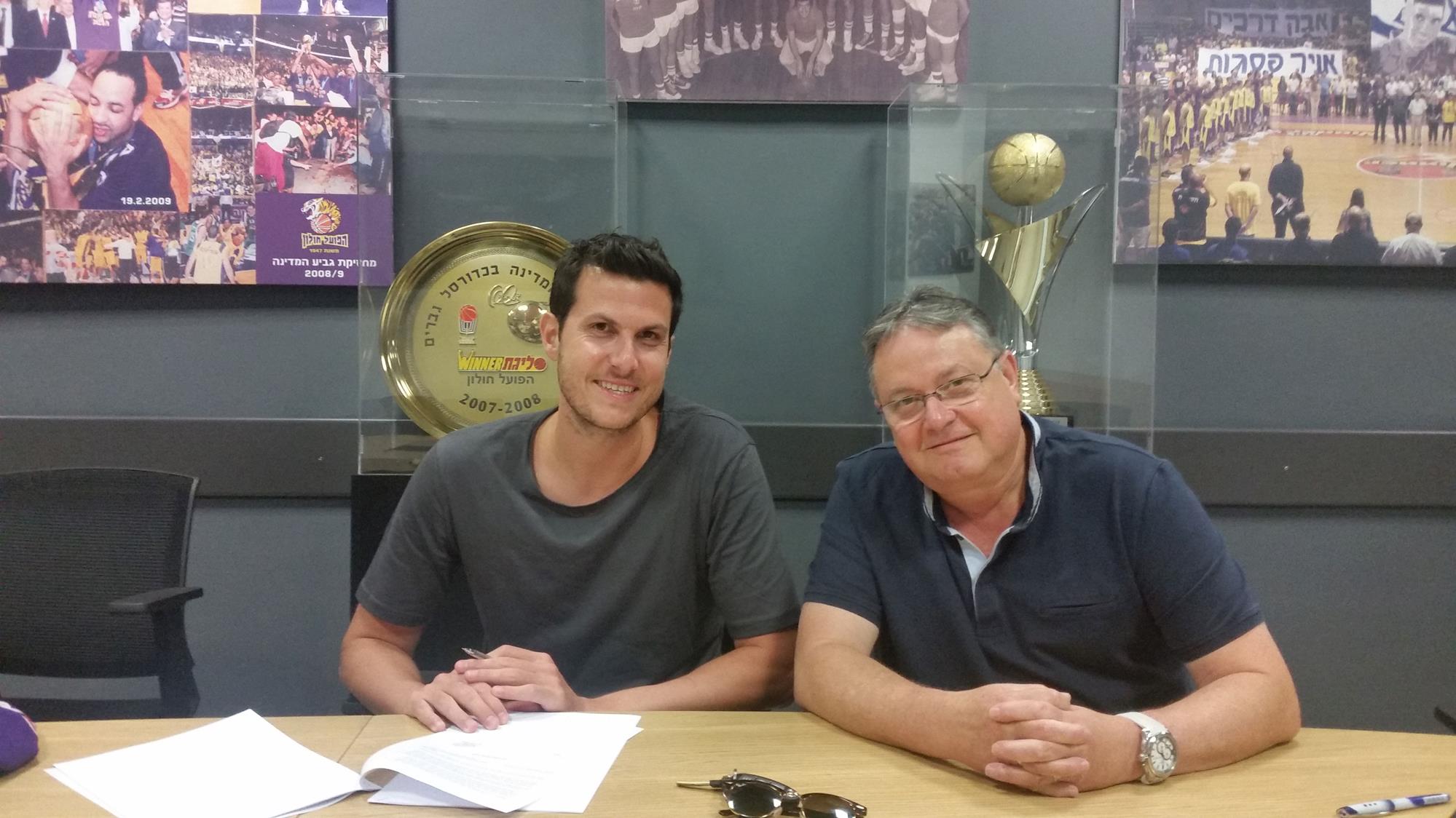 הפורוורד חתם לשנתיים בהפועל "יונט" חולון: "שמח לחזור לעבוד עם מאמן גדול כמו דן שמיר". המאמן: "מאחל לגיא שייהנה מהבית החדש שלו" (צילום: הפועל חולון)