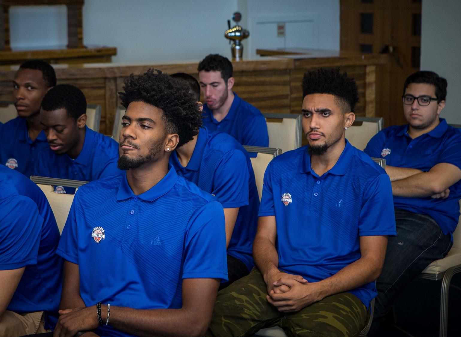 בני "רב בריח" הרצליה פתחה עונה עם ספונסר ושם חדש, הקפטן תום מעיין הצהיר: "רוצה טבעת". היו"ר אלדד אקוניס: "דאוסון הישראלי הטוב בליגה" (צילום: עודד קרני)