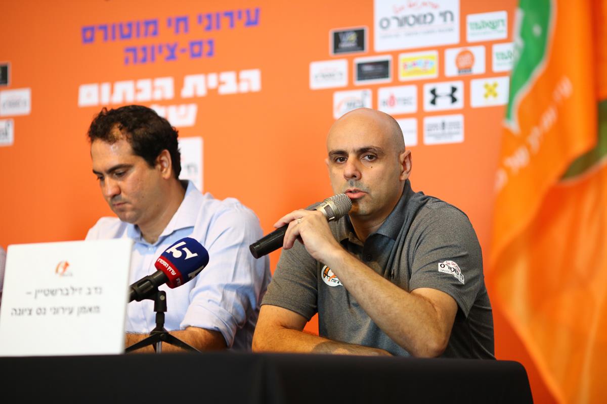 עירוני "חי מוטורס" נס ציונה הציגה את הספונסר החדש. המאמן נדב זילברשטיין: "קבוצה שיש מאחוריה עיר". טל דן: "יש רעב להצליח" (צילום: לירון מולדובן)