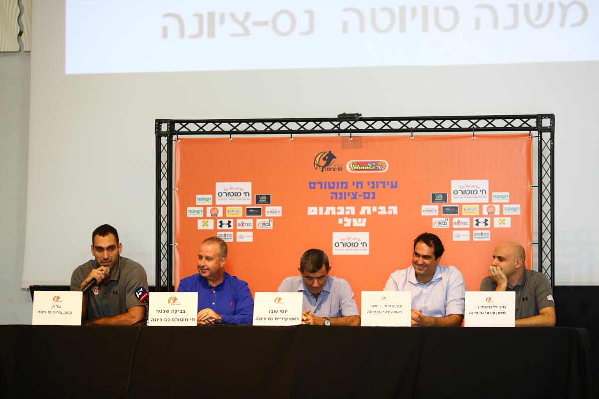 "אני רוצה להגיד תודה ליו"ר הקבוצה שנמצא לידי, לשחקנים שהגיעו מכל קצוות העולם כדי לשחק בנס ציונה, למאמן ולתומכים, אני רוצה לאחל לכם בהצלחה", אמר ראש העיר יוסי שבו בתחילת מסיבת העיתונאים, "תדעו לכם שהכדורסל בנס ציונה קיבל תנופה בזכות האנשים שמנהלים אותו ובזכות המנהלים והמתנדבים שעושים הכל כדי שהקבוצה תהיה ייצוגית. ההישג בעונה שעברה היה גדול מאוד, אני מצדיע לשחקנים, למאמן ולמארגנים שהצליחו לחזור לליגה אחרי שנה אחת בלבד. ההישג הכי גדול שלהם זה ש-1,400 בני נוער עוסקים בכדורסל בעיר. נס ציונה תנצח רק ברוח ובלחימה, אנחנו לא יכולים להתמודד עם תקציבים של מיליוני שקלים, אבל ברוח כן. אנחנו מתכננים לבנות בעיר אולם של 2,500 מקומות קבועים ועוד 500 מתקפלים, יש כבר יעד ואנחנו מחכים רק ל'קול קורא'. אני יכול להגיד שמתכנן האולם הוא זה שתיכנן את המגרש בבאר שבע".