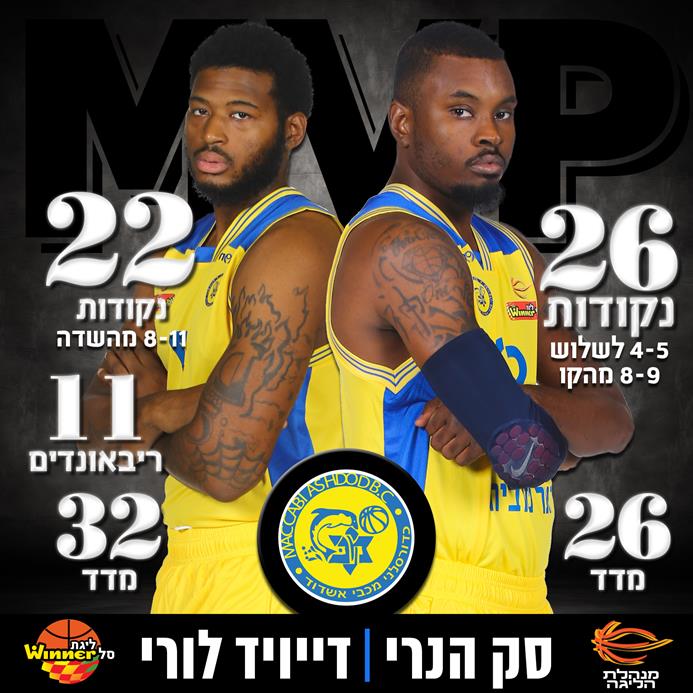 לורי שמסתמן כאחד השחקנים הכי יציבים של "הדולפינים" עד כה קלע מחצית מ-22 נקודותיו (7-9 לשתיים, 1-2 לשלוש, 5-9 מהקו) כבר ברבע הראשון, בו ברחה החבורה של ברד גרינברג לפער דו-ספרתי. הוא הוסיף גם 11 ריבאונדים ו-3 אסיסטים בדרך למדד 32. זה היה הדאבל-דאבל השלישי שלו בארבעה משחקים והוא מדורג ראשון בליגה בריבאונדים ושני במדד.