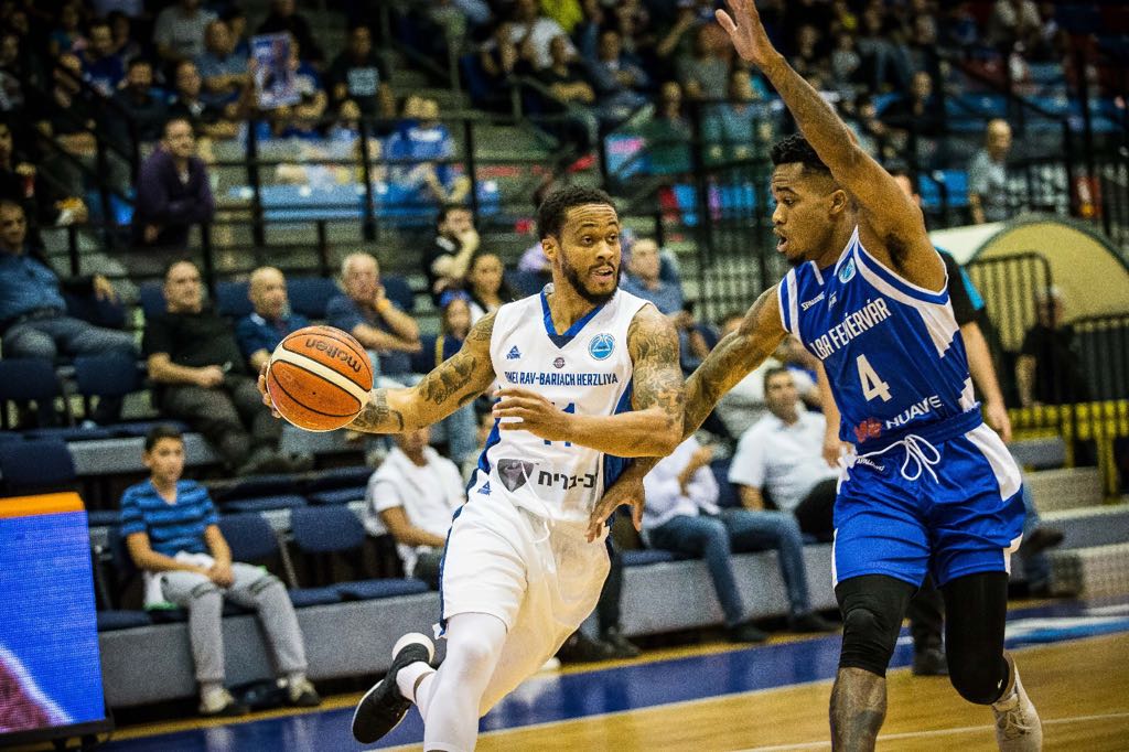 בני "רב בריח" הרצליה התרחקה מאוד מהשלב הבא באירופה לאחר 93:68 ביתי מול אלבא פהרוואר. די.ג'יי שארפ היה נקודת האור עם 17 נקודות (צילום: עודד קרני)